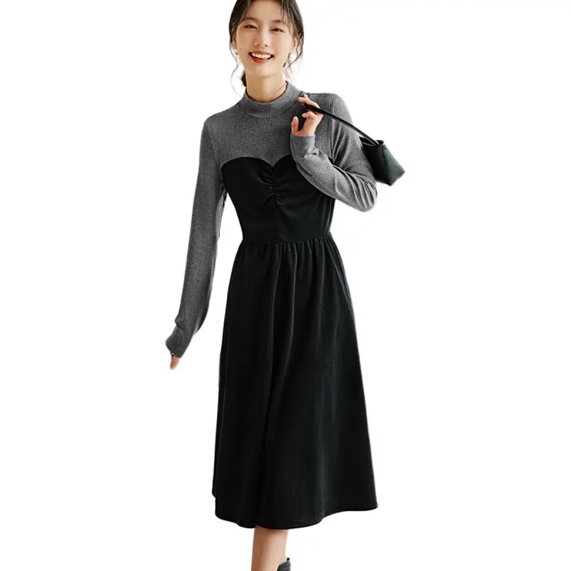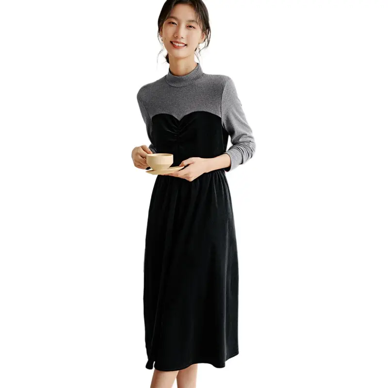 XWI Длинное платье с длинным рукавом женское черное