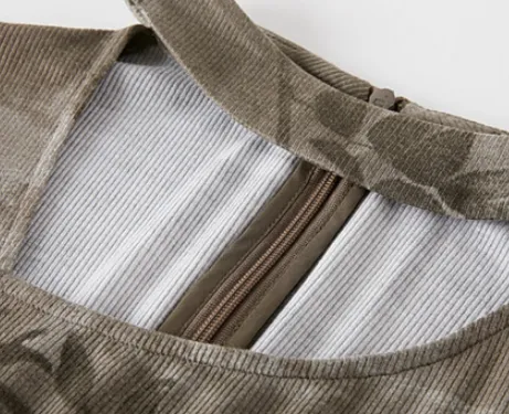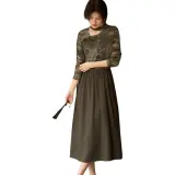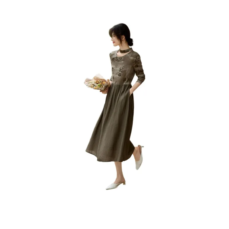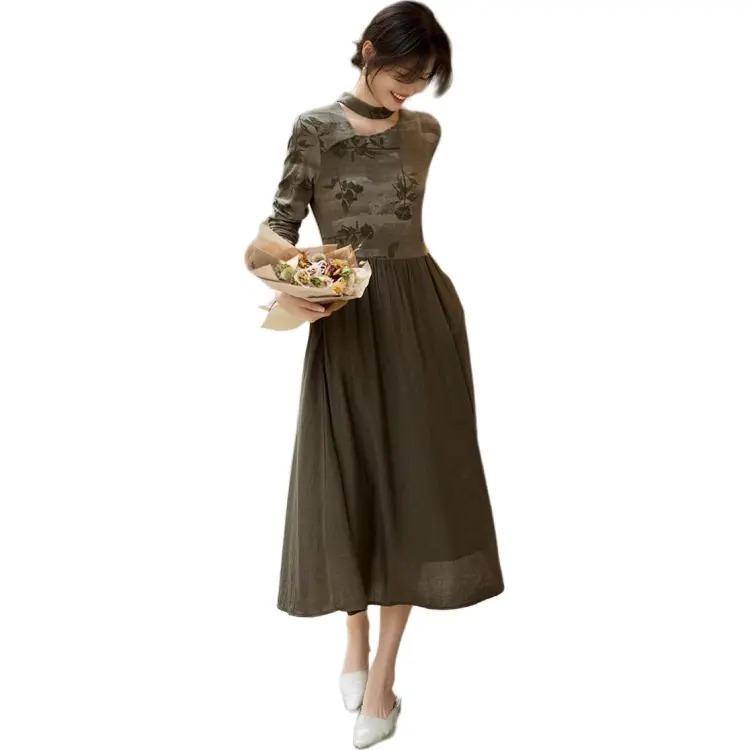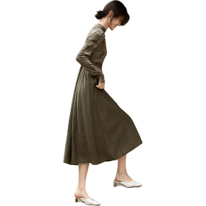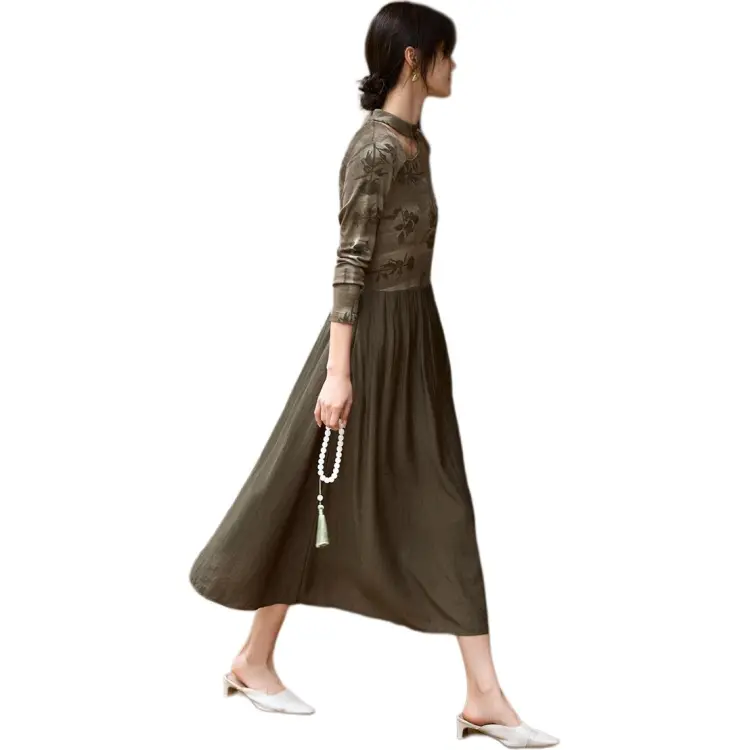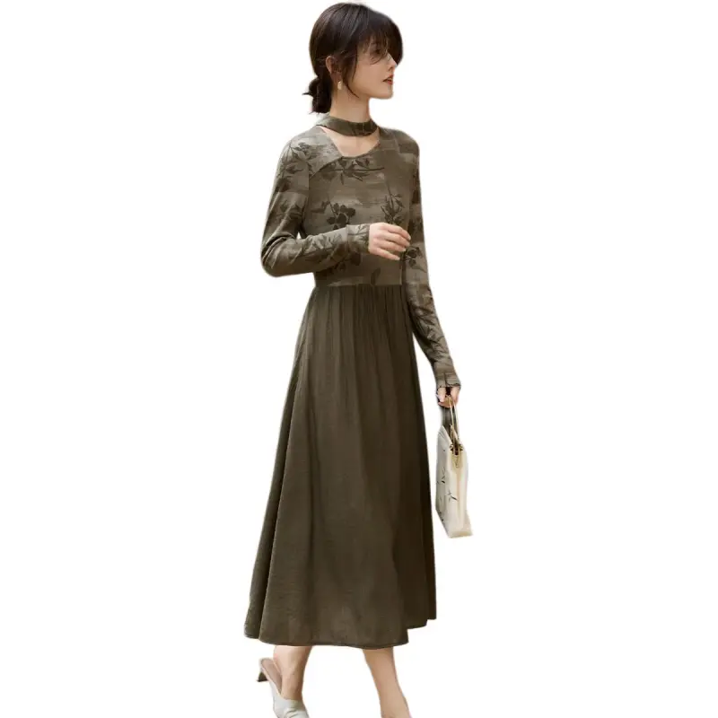 XWI Длинное платье с длинными рукавами женское кофейно-зеленый