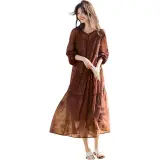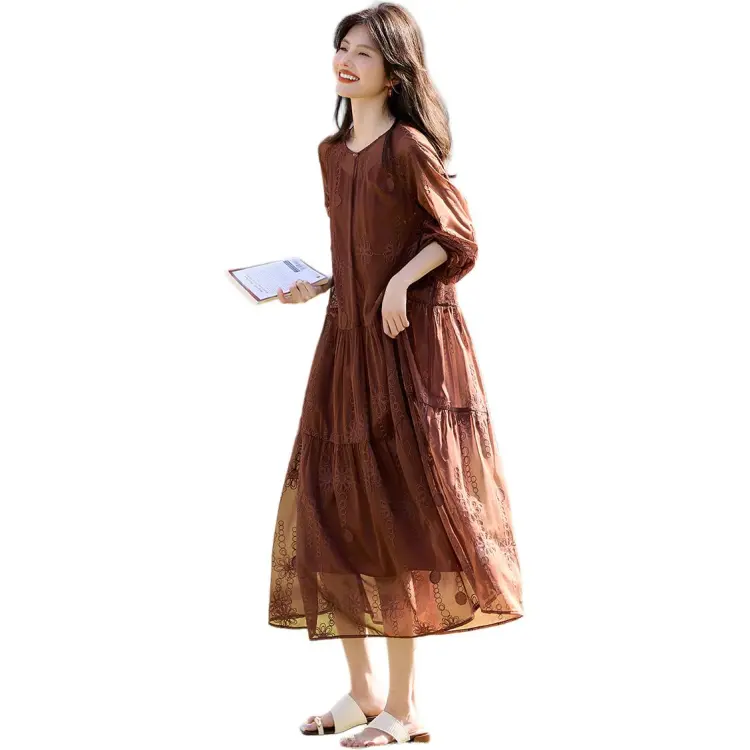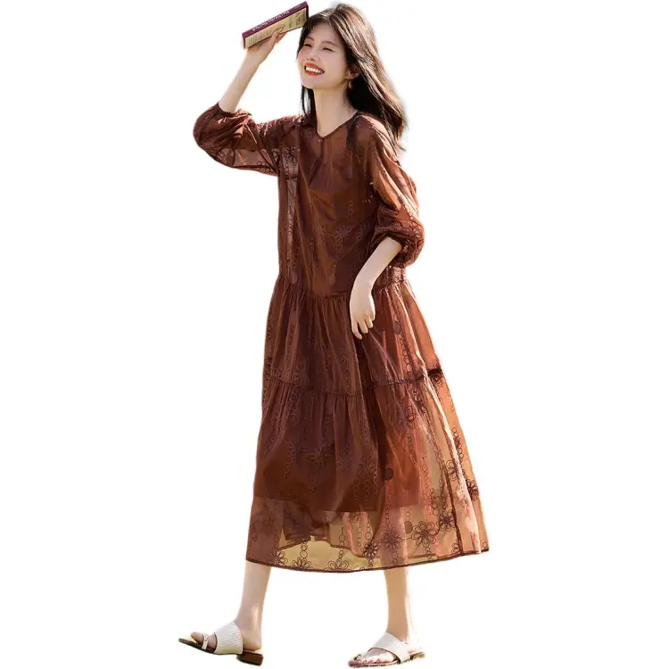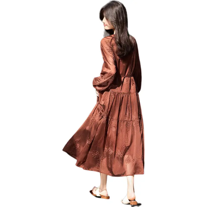 XWI Длинное платье с длинными рукавами женское светлый кофейный