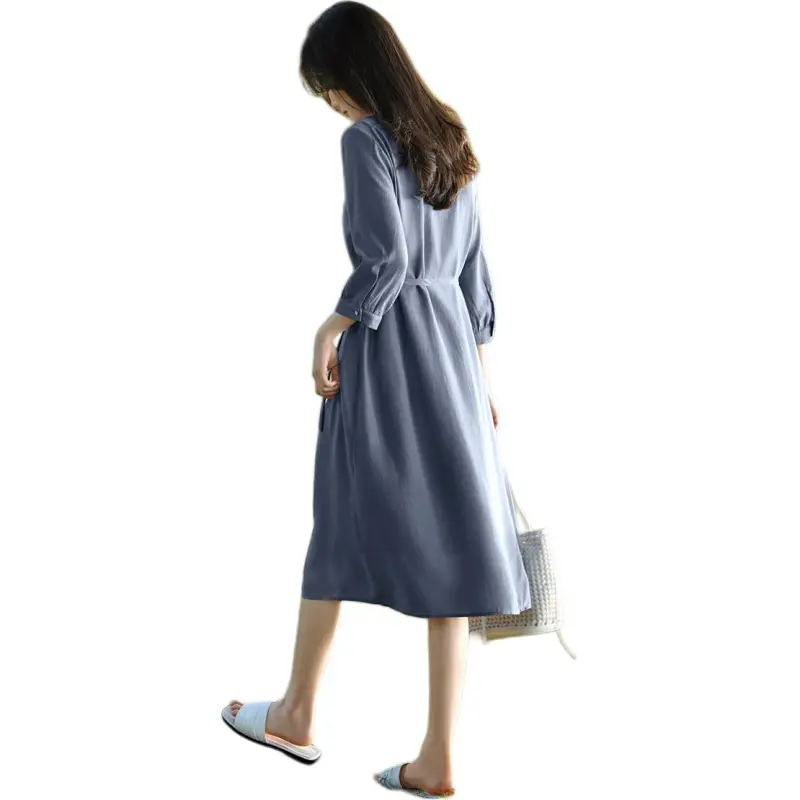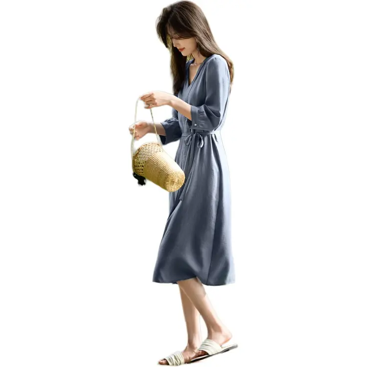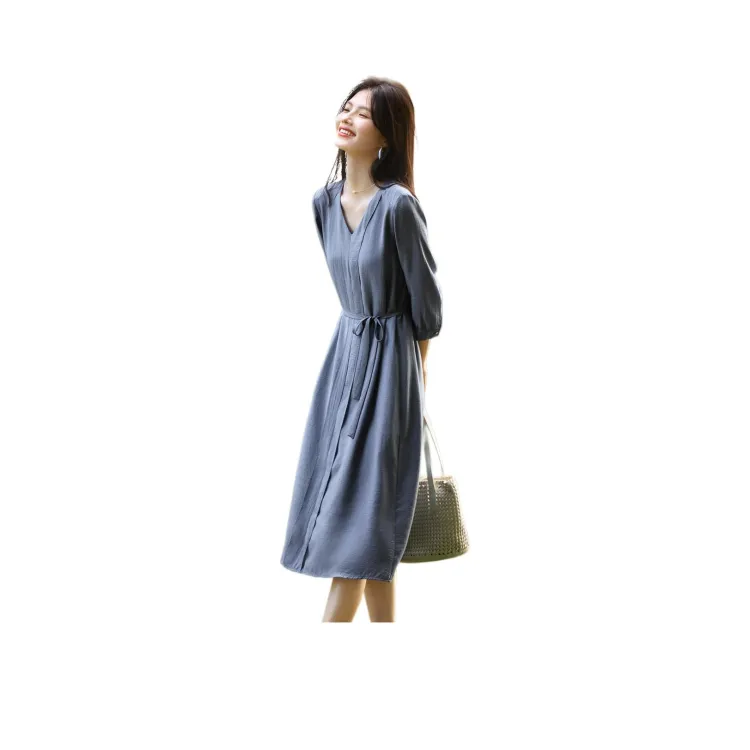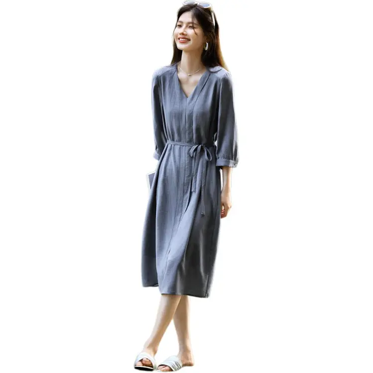 XWI Длинное платье с длинными рукавами женское туманно-светло-синий
