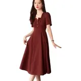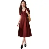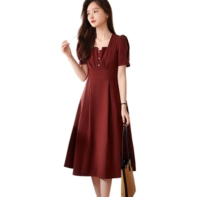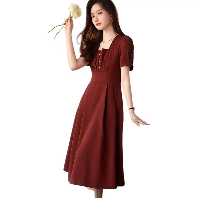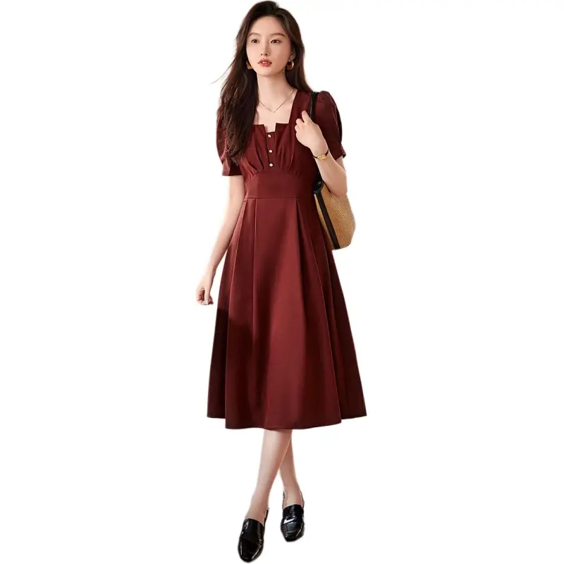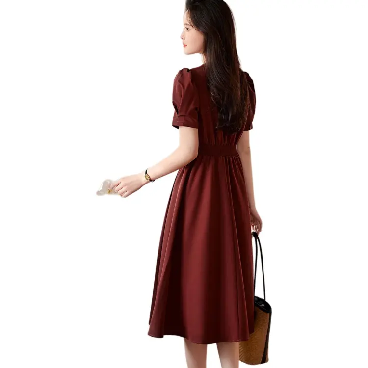 XWI SS24 Короткое платье с короткими рукавами женское темно-красное