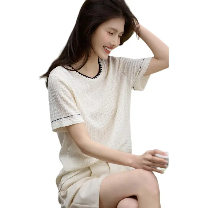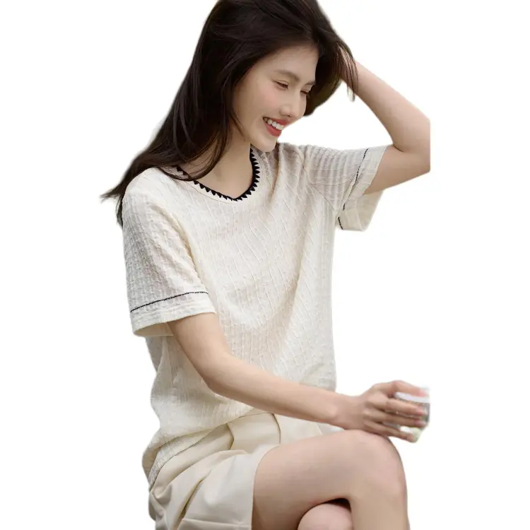 XWI T-Shirt Женская Белая и Темно-Синяя