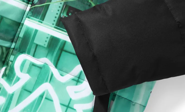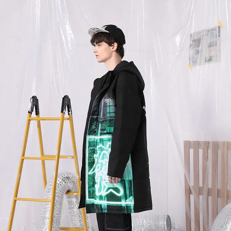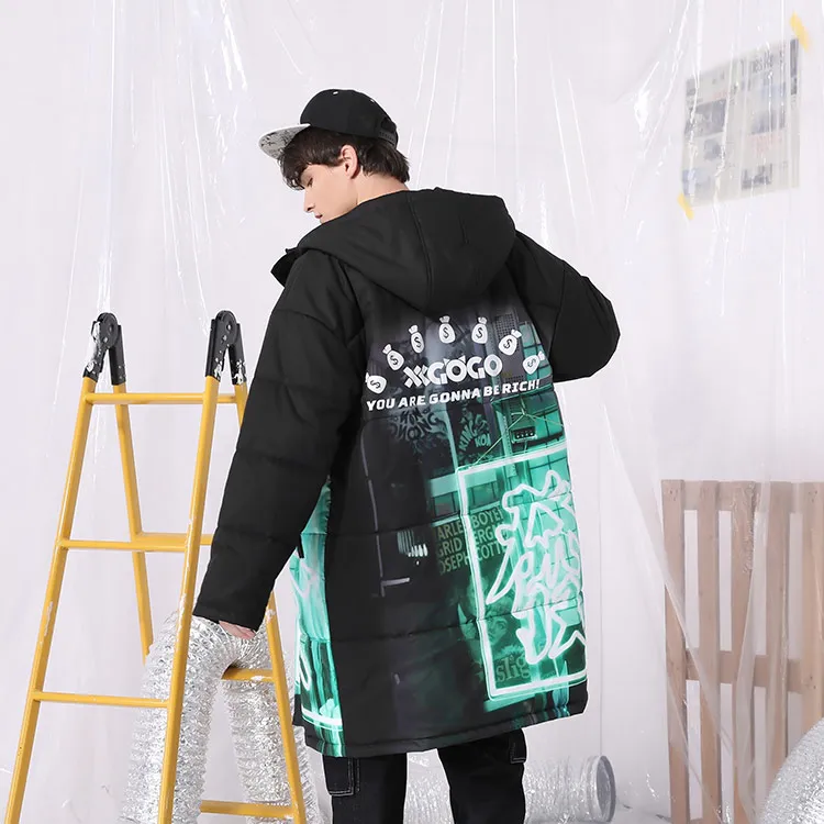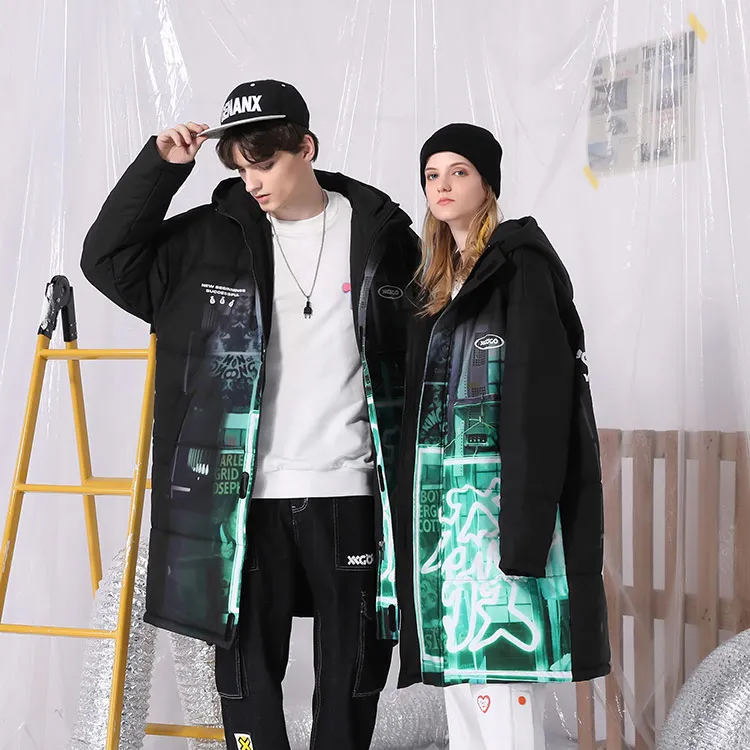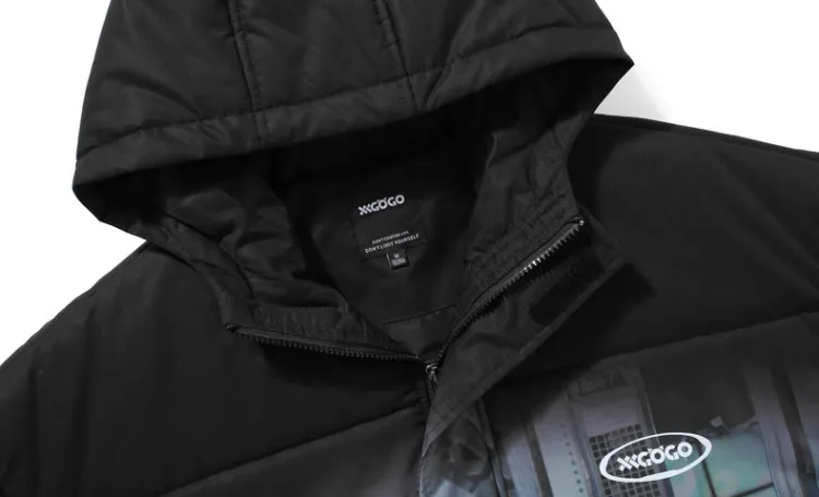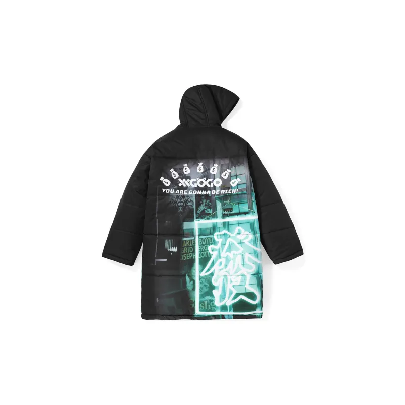 XXGOGO Letter С капюшоном Loose Fit MID Пух Длина Down Jacket Unisex Black