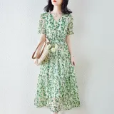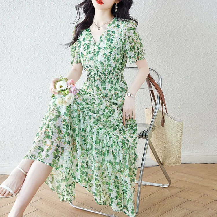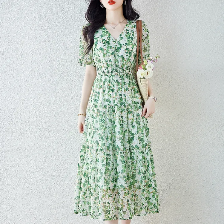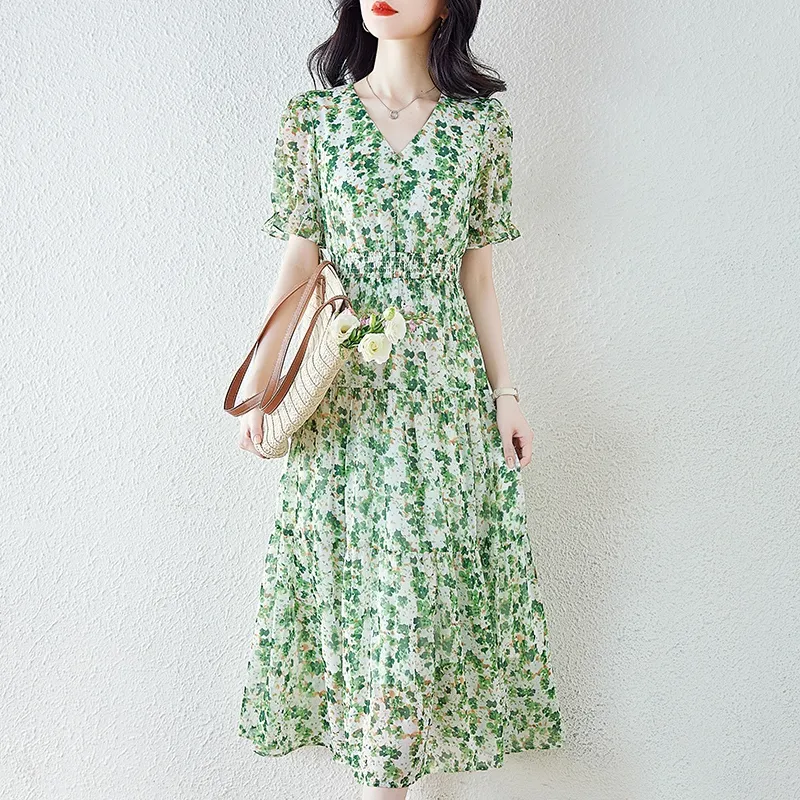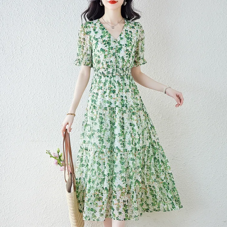 XZCV Зеленые Женские Платья с коротким рукавом