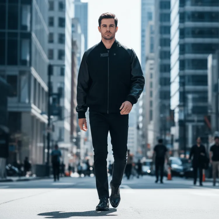 Эта куртка выполнена в однотонной цветовой гамме, где основной черный оттенок подчеркивает лаконичный и стильный образ. Дизайн с комбинированными молниевыми вставками является ключевой особенностью, добавляя куртке объем и придавая образу индивидуальность и современность.