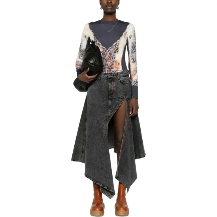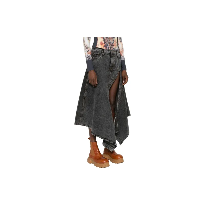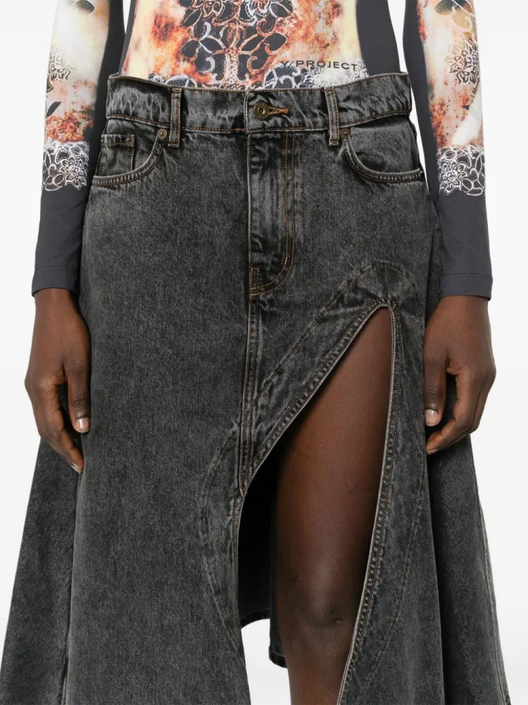YProject SS24 Denim Long Skirt Women's Black