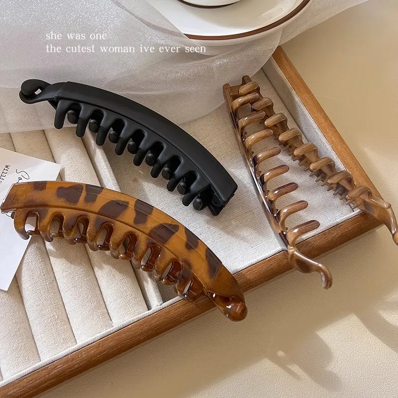 Винтажный леопардовый принт, заколка для волос "Банан" - черная