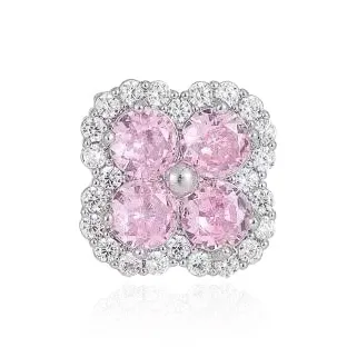 Стиль:Клевер четырехлистный, мятно-зеленый, серьга-гвоздик, один - розовый