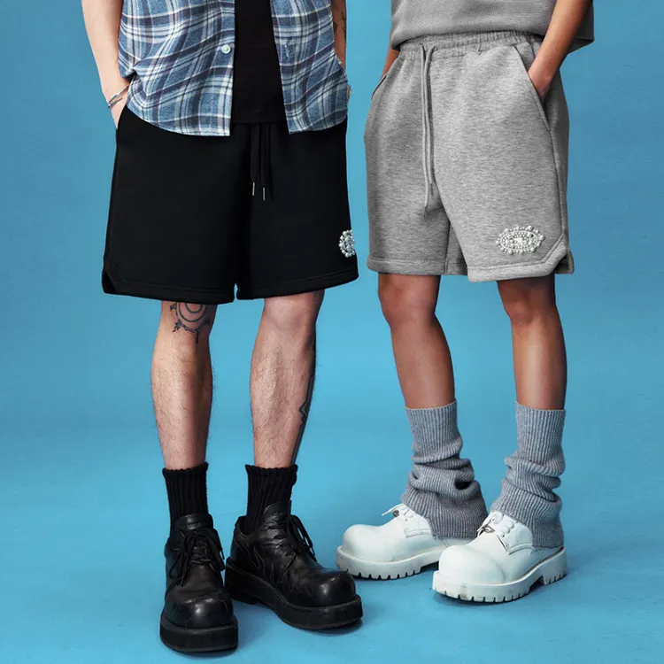 Черная термопереносная жемчужная рубашка с короткими рукавами + серые жемчужные шорты с логотипом