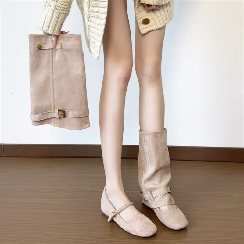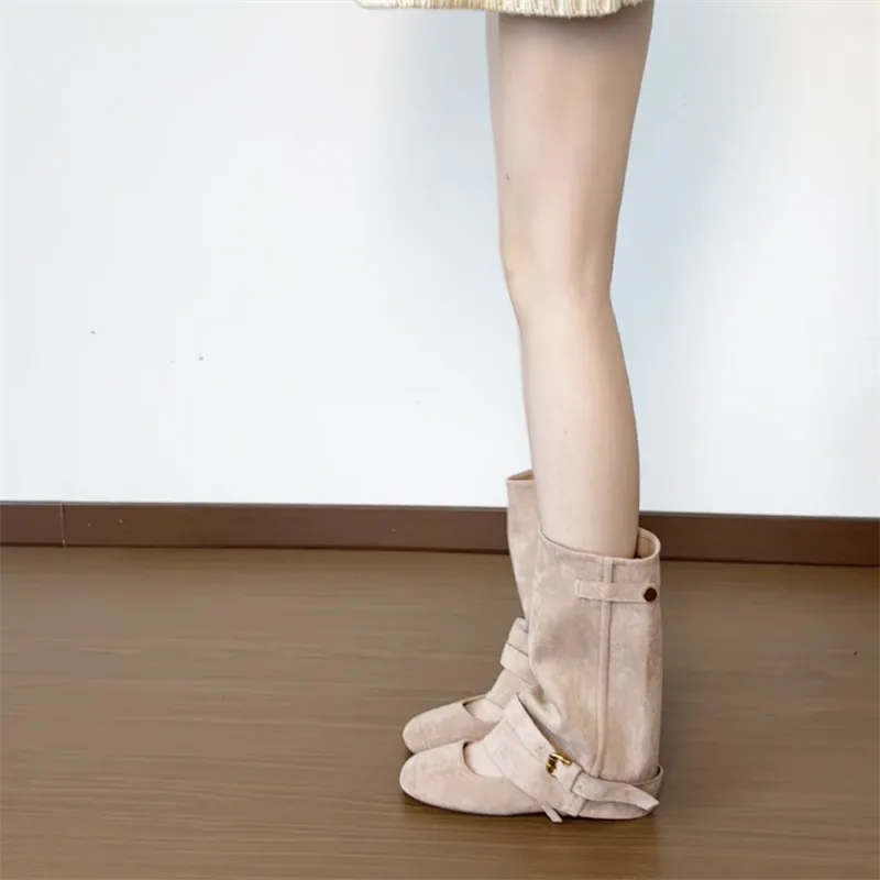 YAFEI XUANYU Колено Высокие сапоги 4CM Женские Абрикос