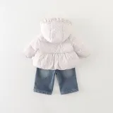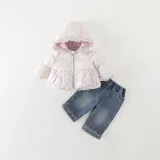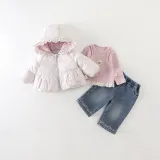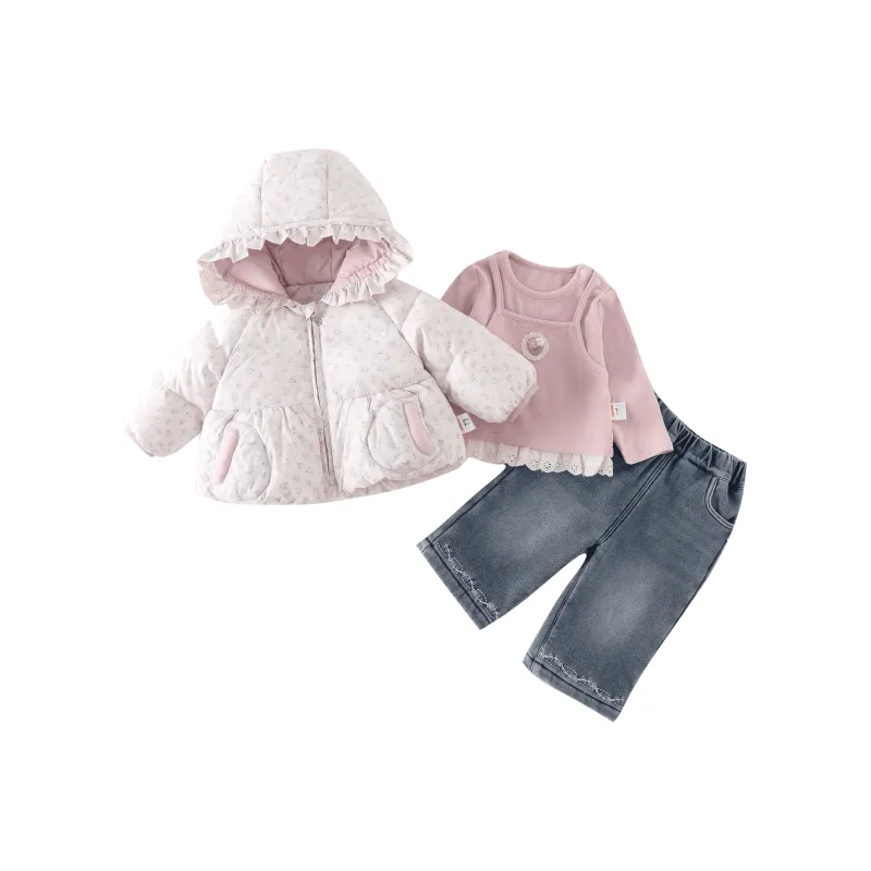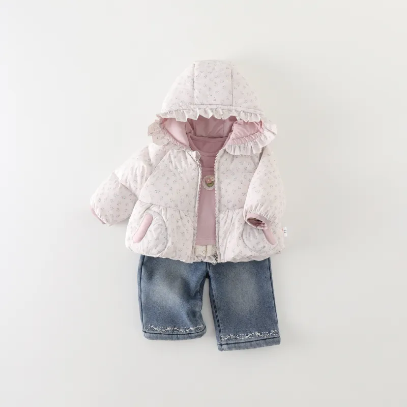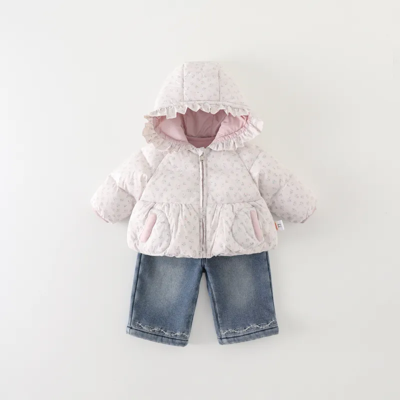 Цвет:Set (Розовое пальто с цветочным принтом, розовый базовый слой, синие джинсы)