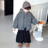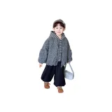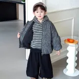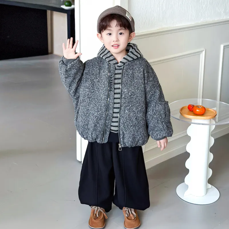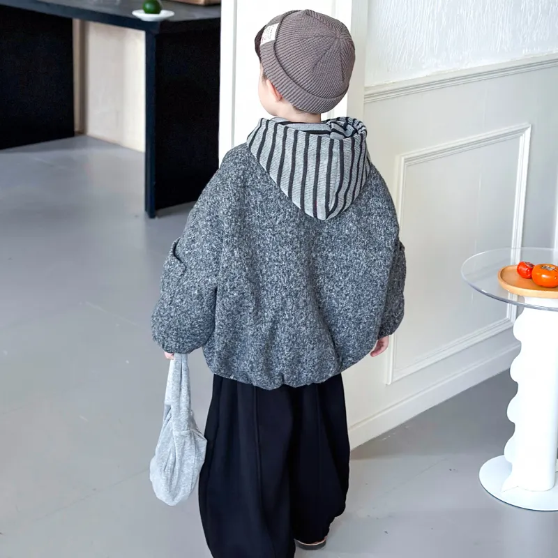 Цвет:Set (Gray Woolen Coat + Striped Sweatshirt + Black Pants) Комплект (Серое Шерстяное Пальто + Полосатый Свитшот + Черные Штаны)