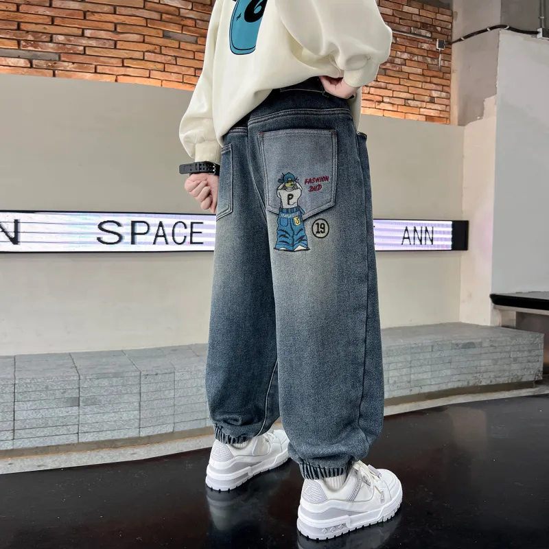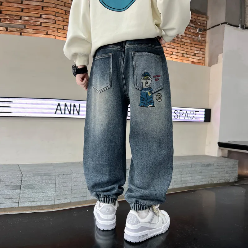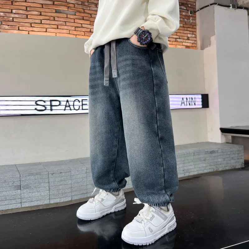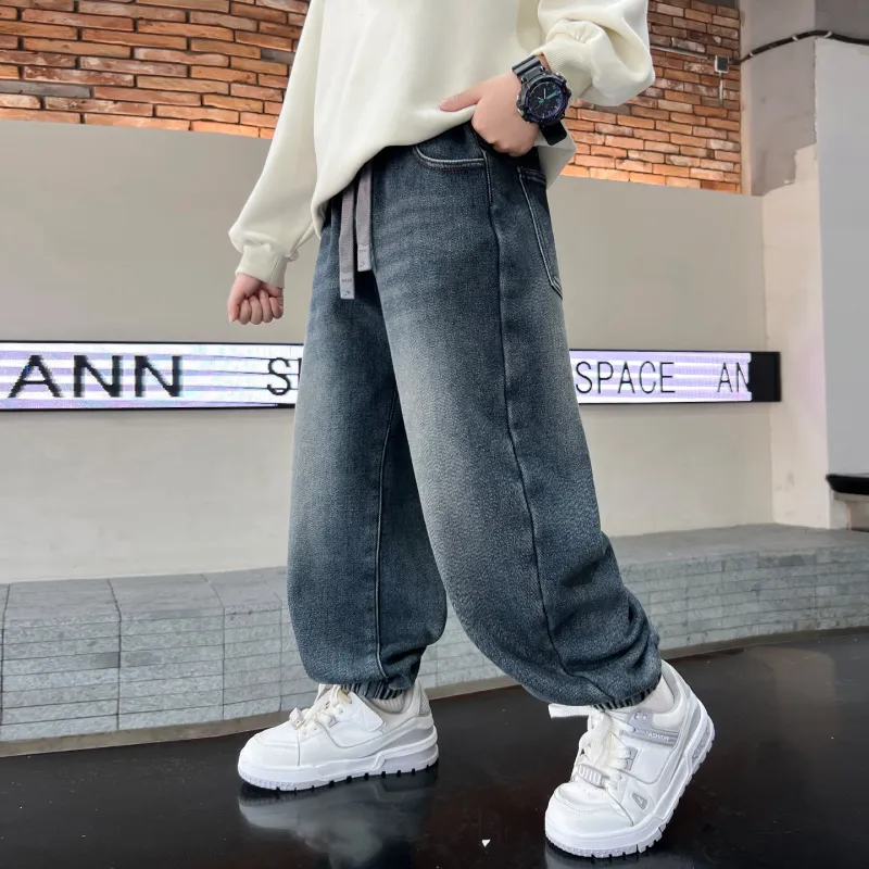 YALU Синий и Серый с флисовой подкладкой XTT7305 Школьные джинсы