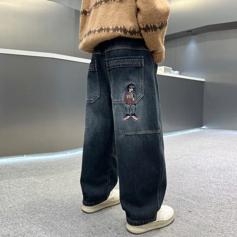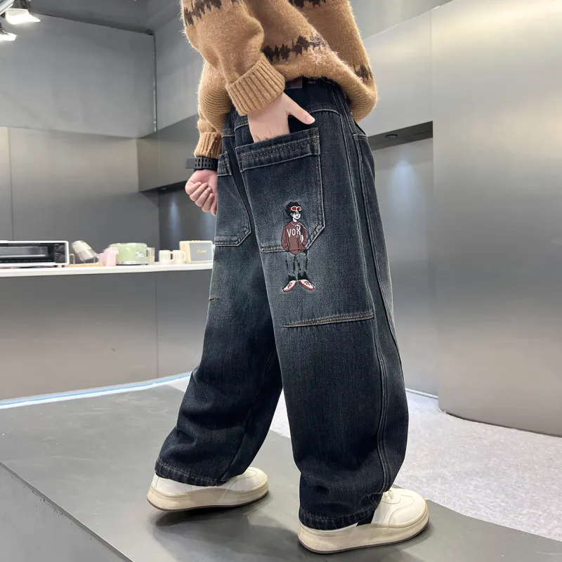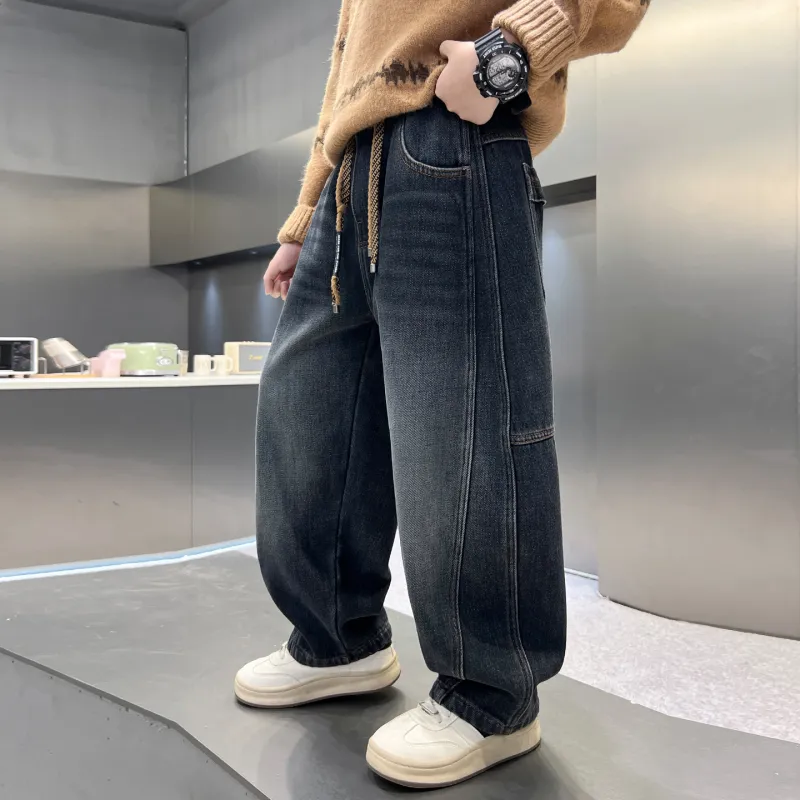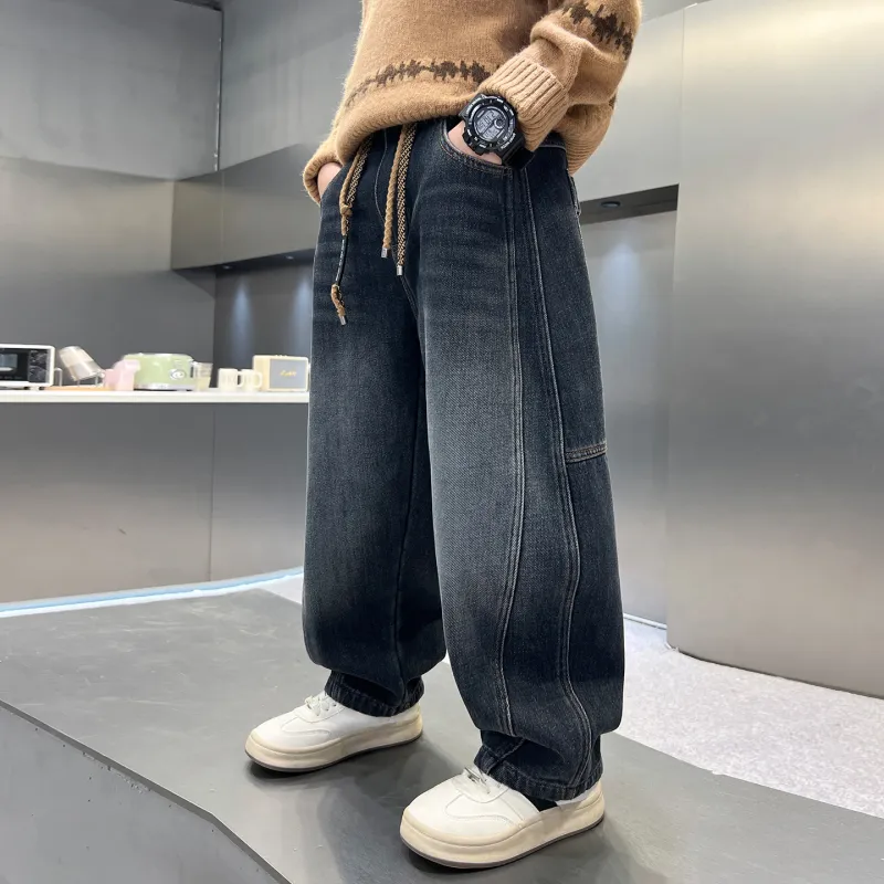 YALU Синий и Серый с флисовой подкладкой XTT7308 Школьные джинсы