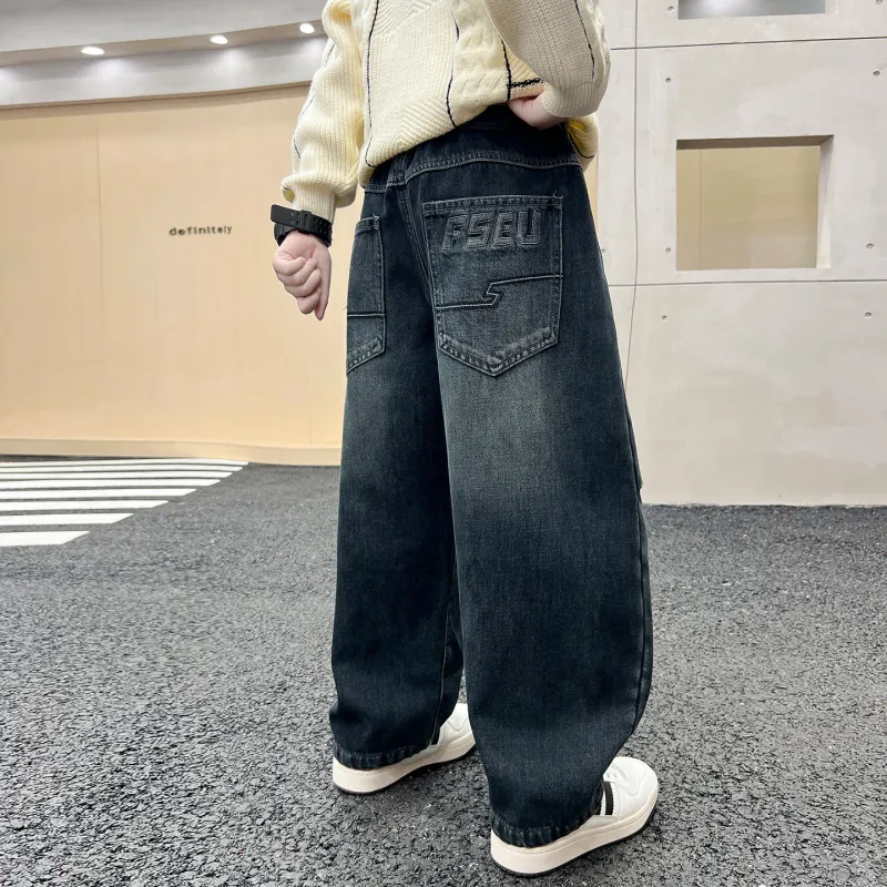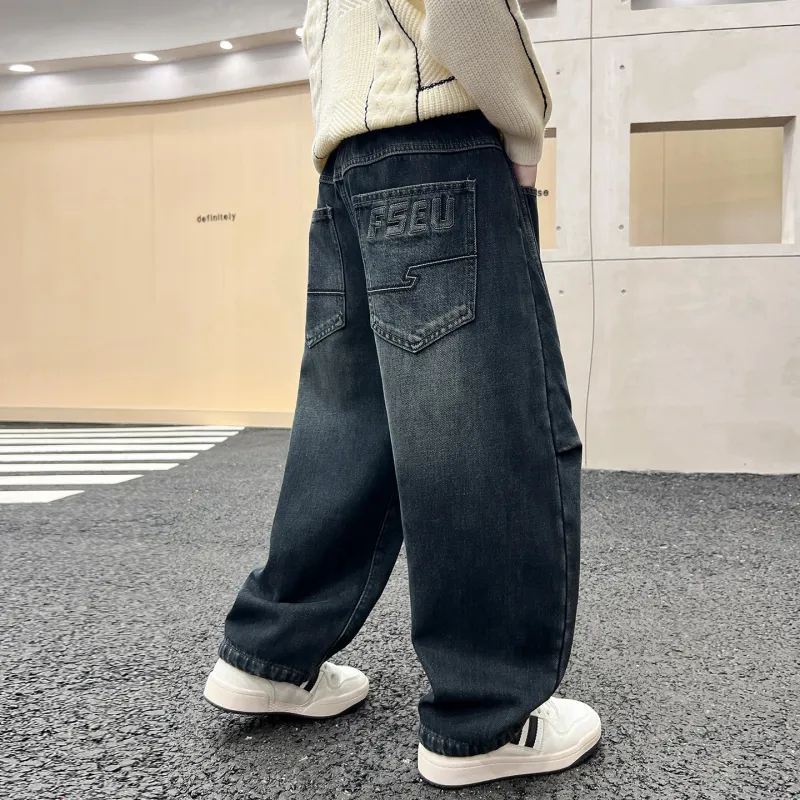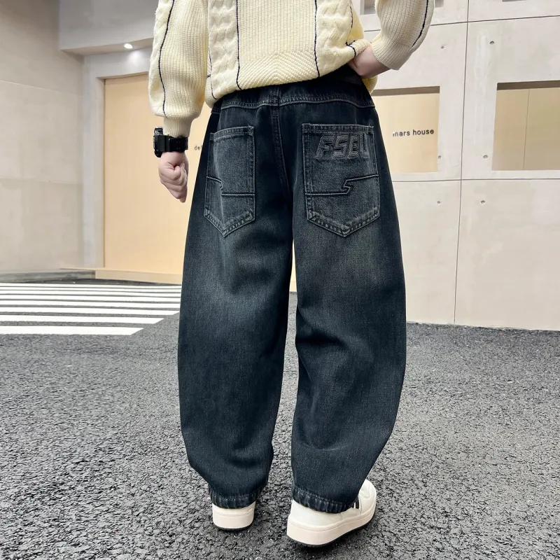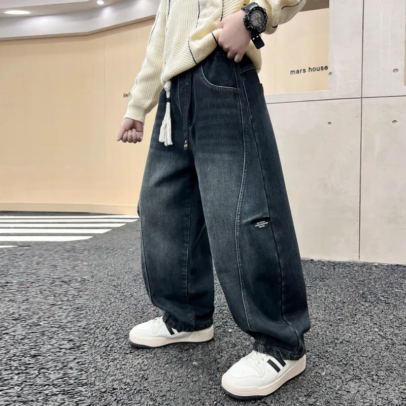 YALU Синий Серый С флисовой подкладкой XTT6293 Школьные Джинсы