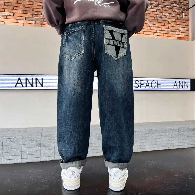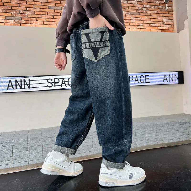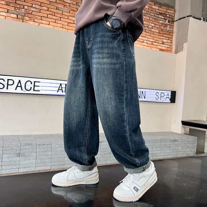 YALU Синий Серый С флисовой подкладкой Джинсы для школьников