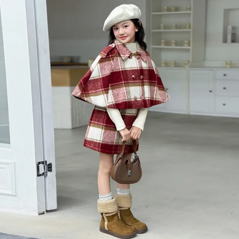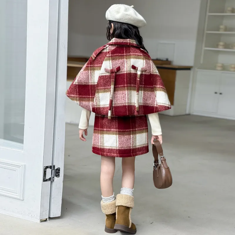 YALU Комплект Красный Шарф + Абрикосовый Базовый слой + Красная Юбка Школьный комплект с юбкой