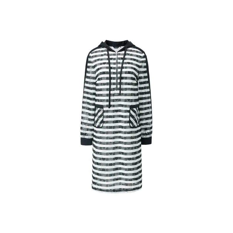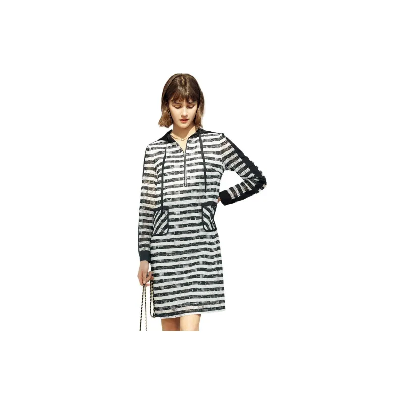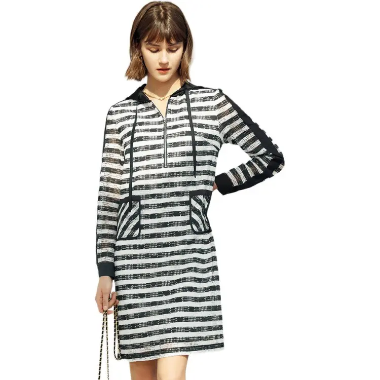 Yan Domain Длинное платье с длинными рукавами женское черно-белые полосы