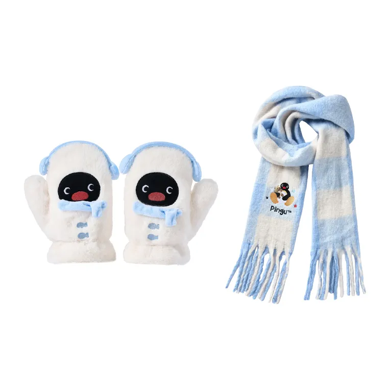 Стиль:Перчатка Pingu Снеговик + Шарф Pingu (Пыльно-синий в клетку)