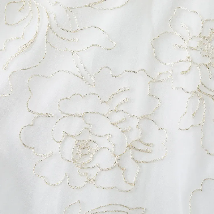Шифон: Основная ткань: 100% нейлон, вышивка: нить — полиэстеровое волокно/полиэстер пленка, яркая пряжа — прозрачная пряжа: 100% нейлон, подкладка: 100% хлопок