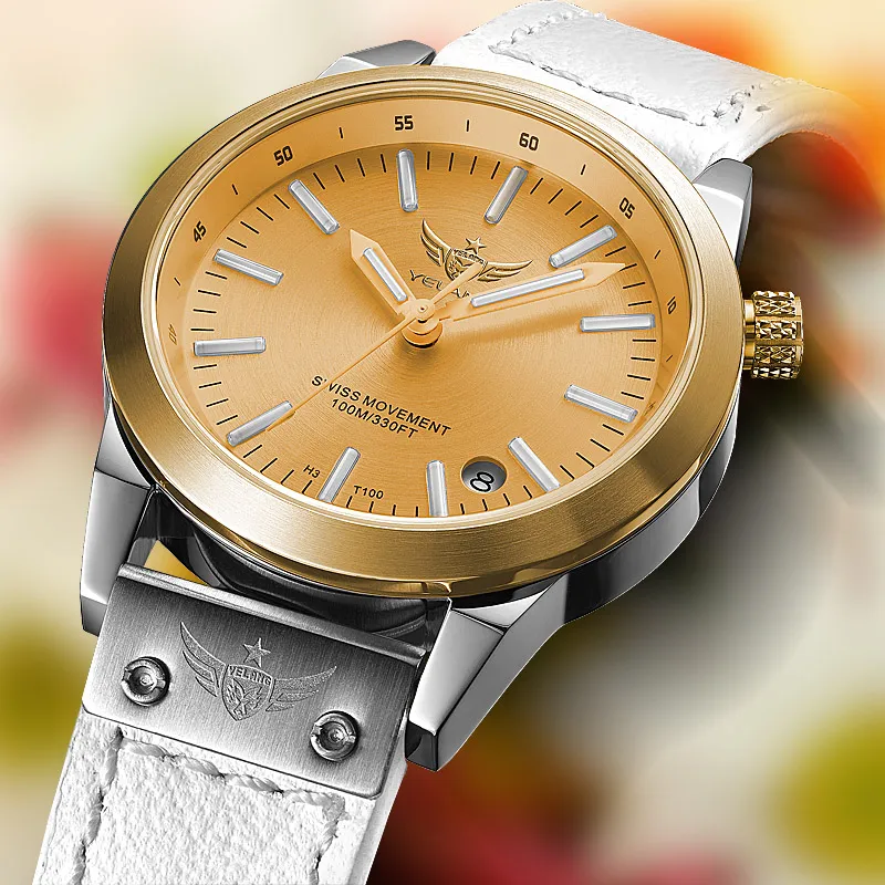 YELANG Кварцевый механизм ремень из натуральной кожи женские часы золотой циферблат