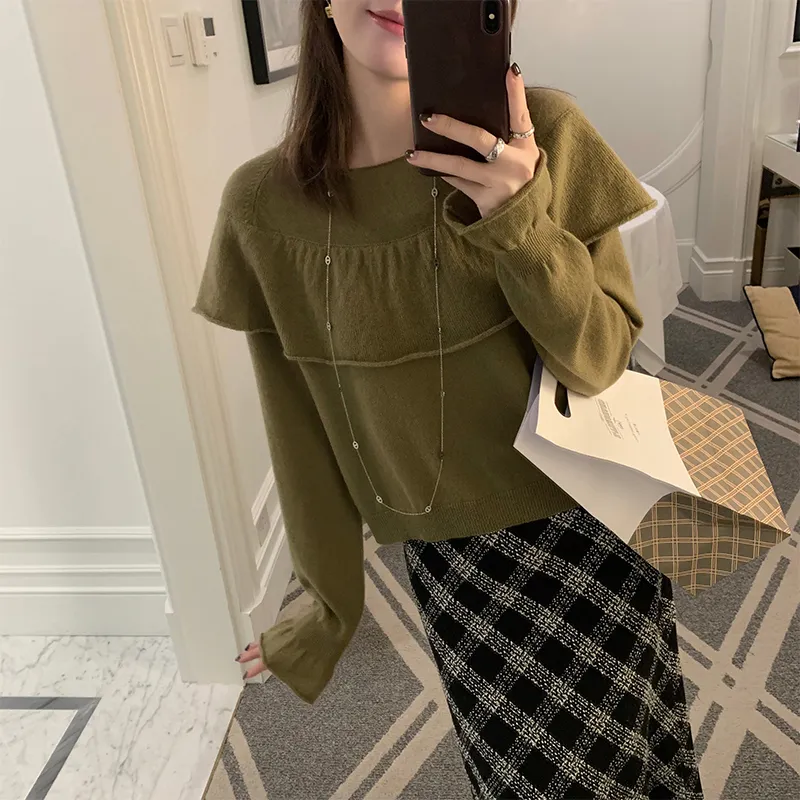 YESWOMEN Оливково-зеленый Женские кашемировые свитеры