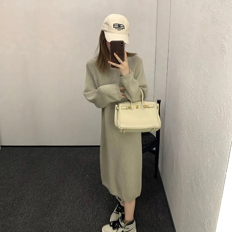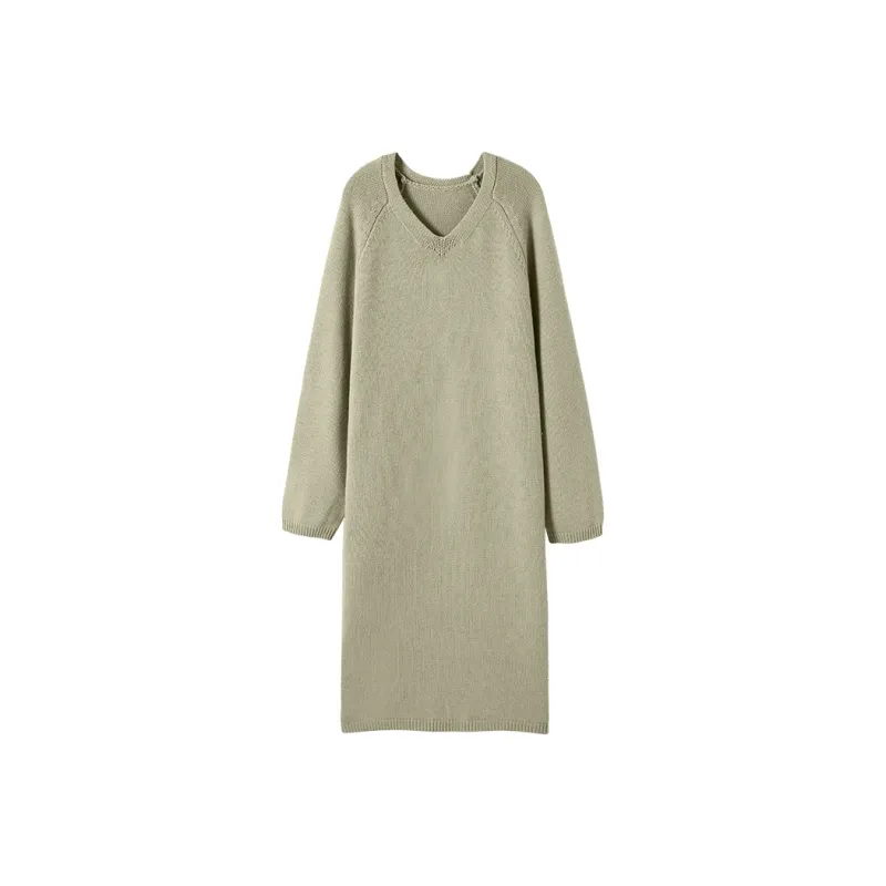 YESWOMEN Шалфейно-зеленый Женские Длинные Платья с Рукавами
