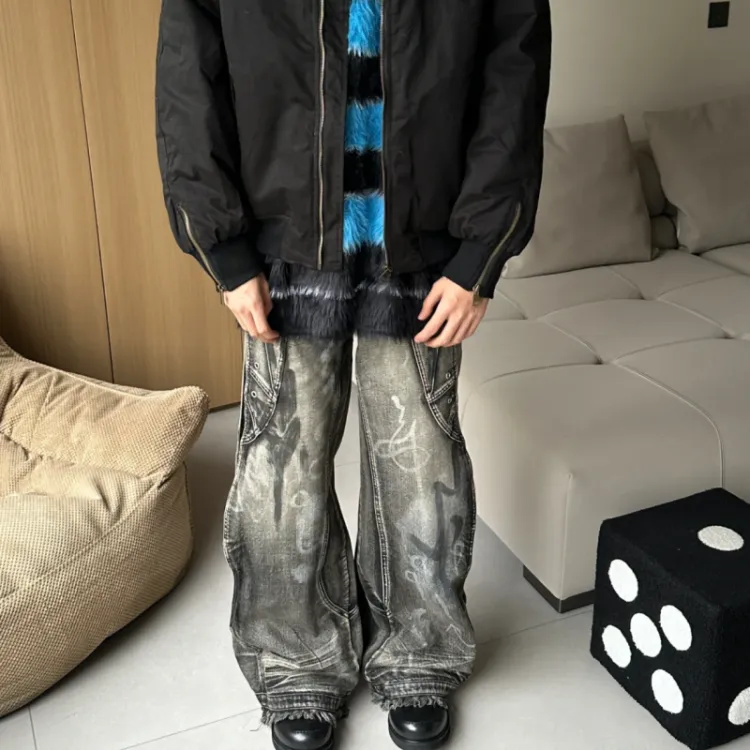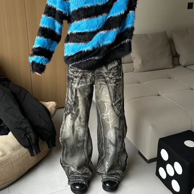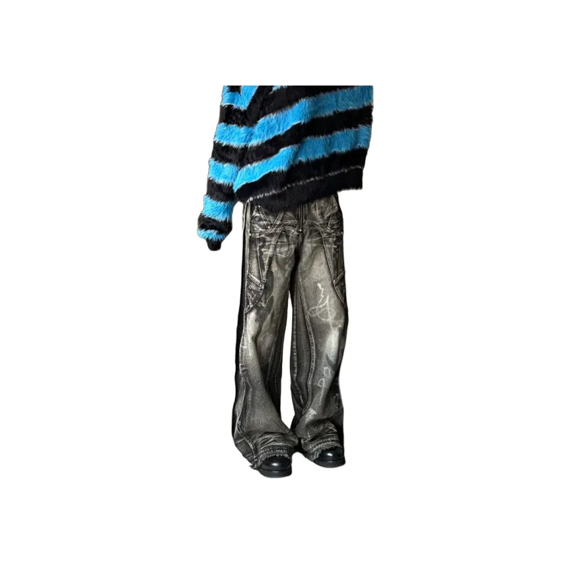 YGHOME OFFICIAL Черный Серый Цвет Унисекс Джинсы