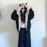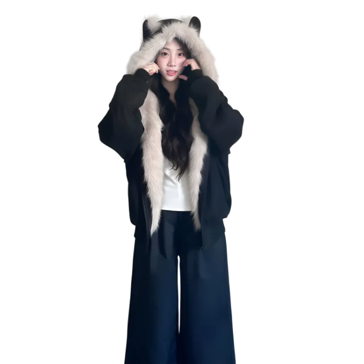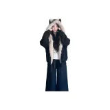 Цвет:Черный [Плюшевый Котенок Ухо] Термический Флис с Подкладкой