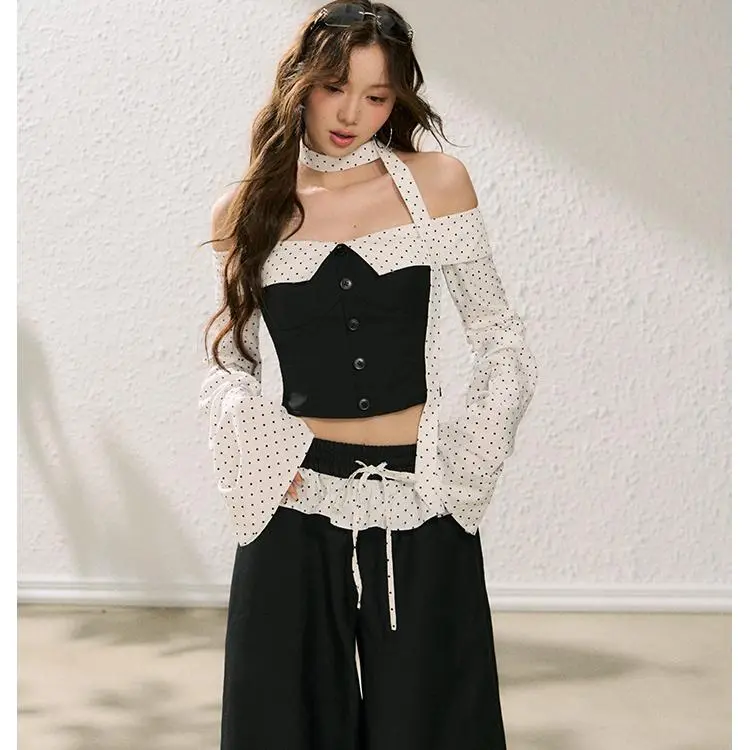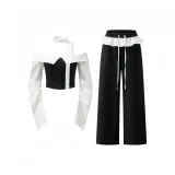 YGPRW Black Set Women's Casual Suits YGPRW Черный комплект Женские Повседневные костюмы