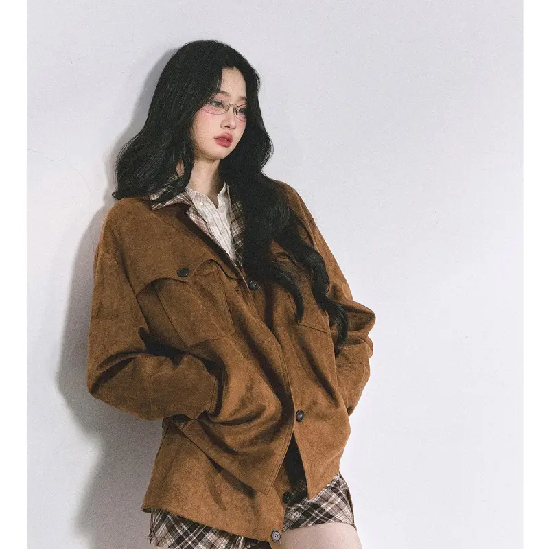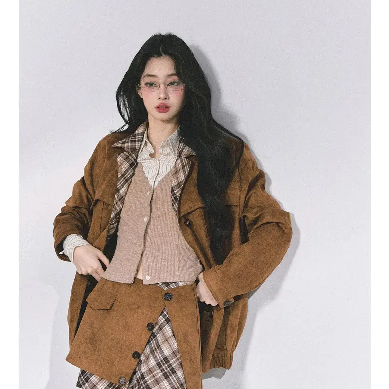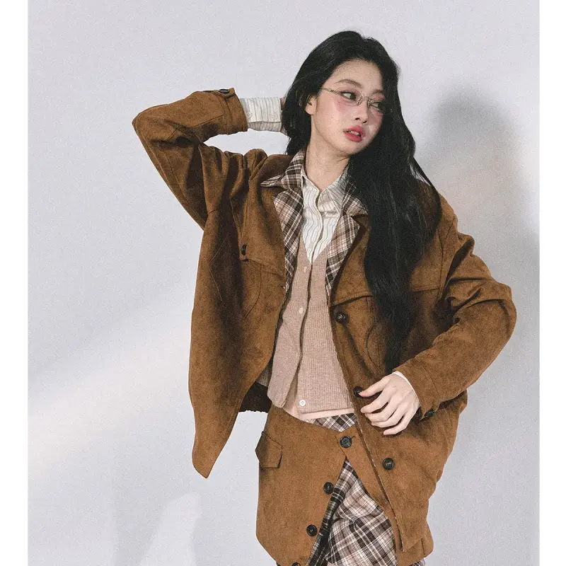 Комплект:Светлый кофейный пальто + короткая юбка