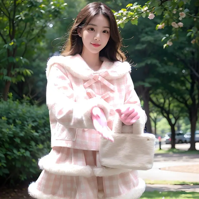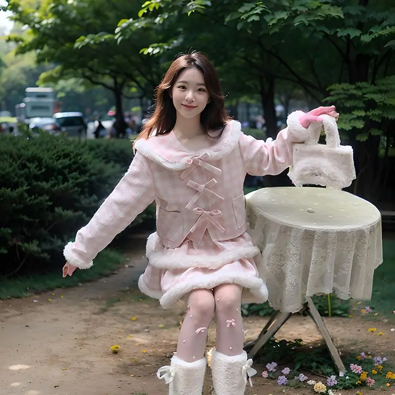 Комплект:Розовое пальто + юбка