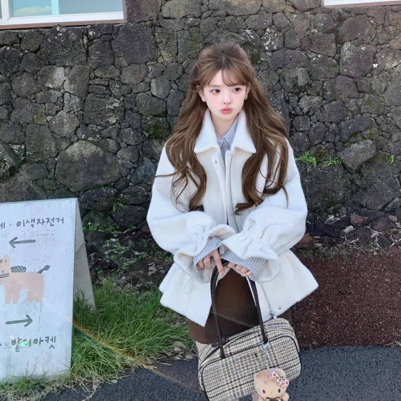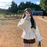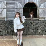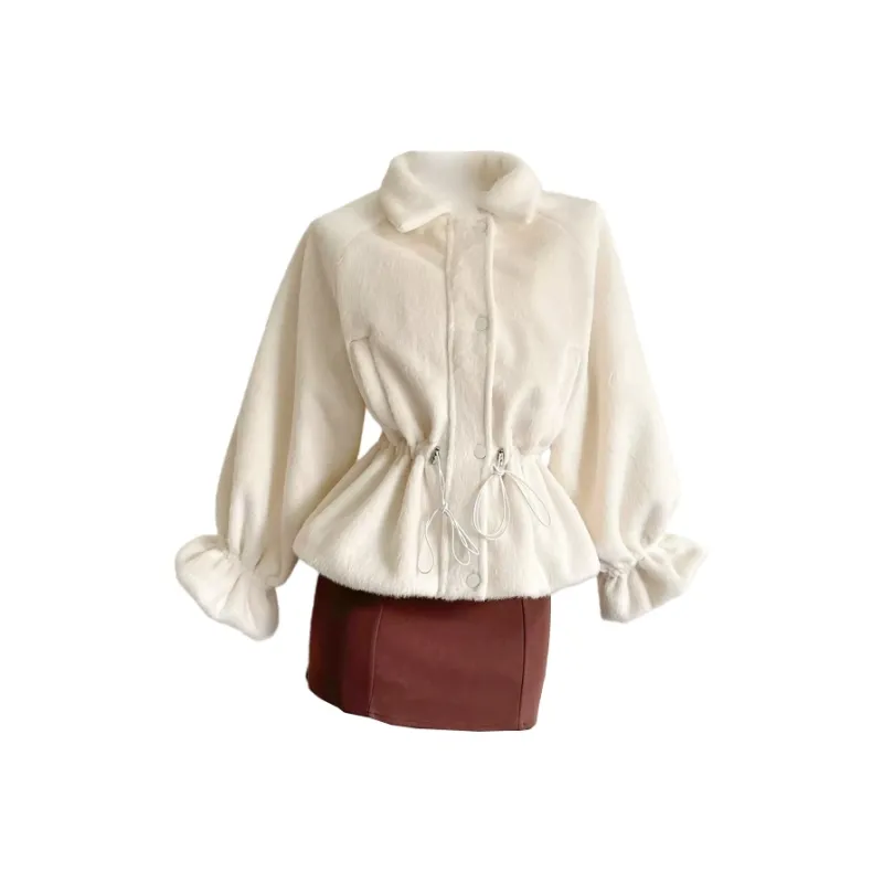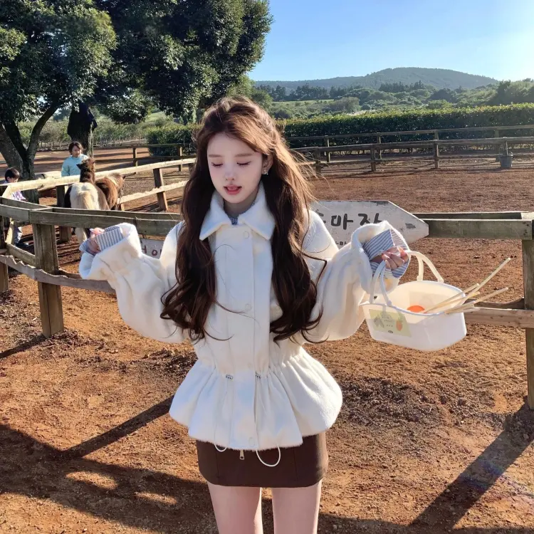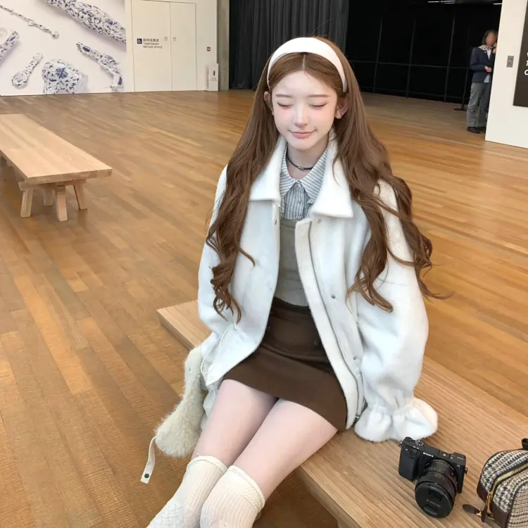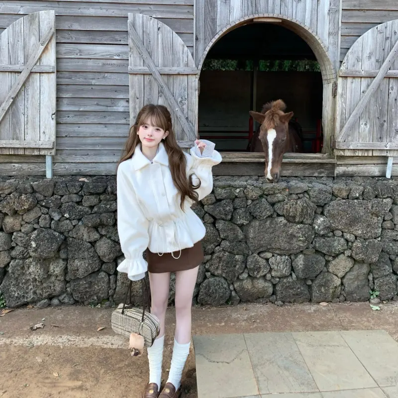Комплект:Белое пальто + кофейная короткая юбка