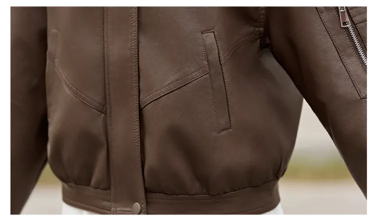 Yi Mengyuan Кожа Куртка Женская