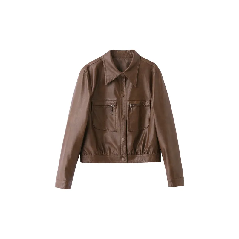 Yi Mengyuan Кожа Куртка Женская