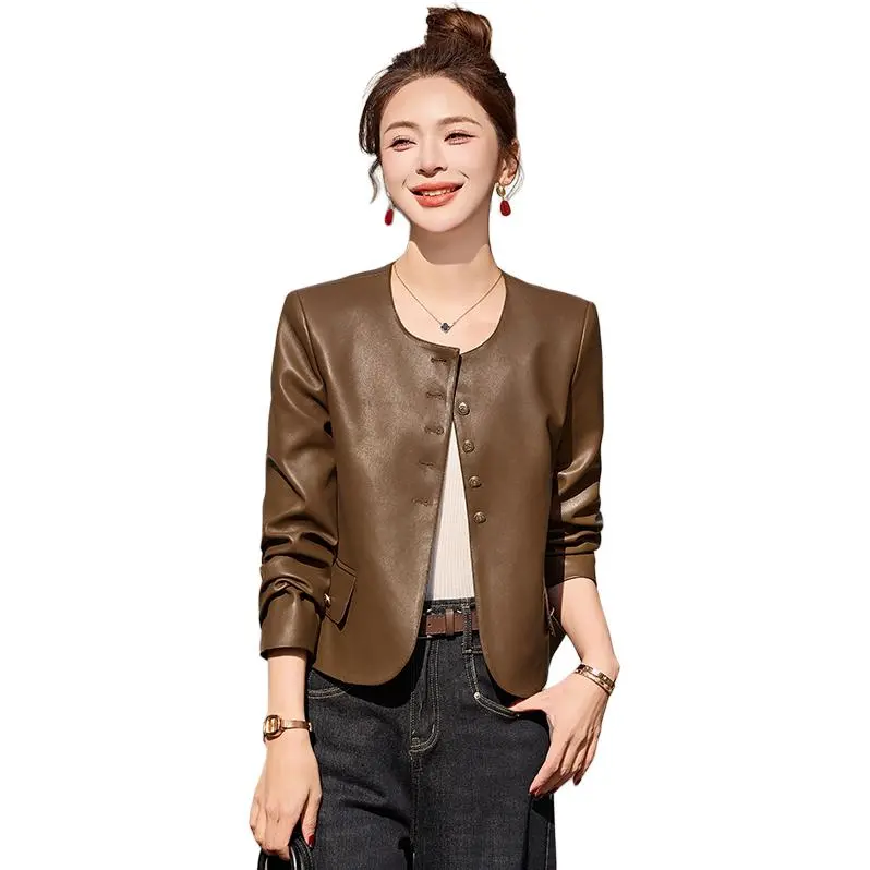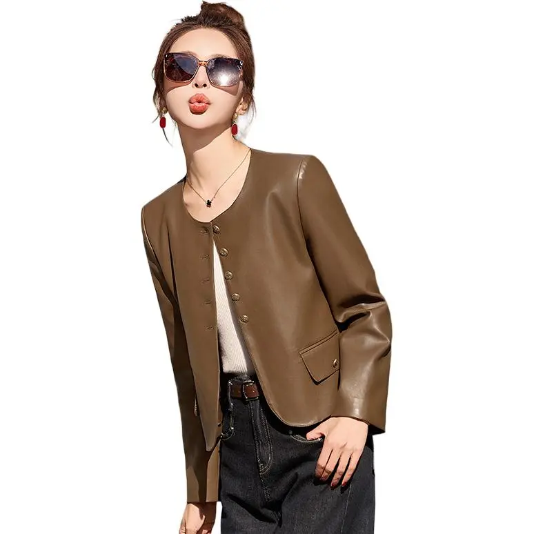 Yi Mengyuan Кожа Куртка Женская