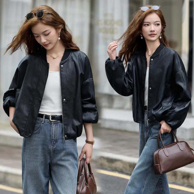 Yi Mengyuan Кожа Куртка Женская