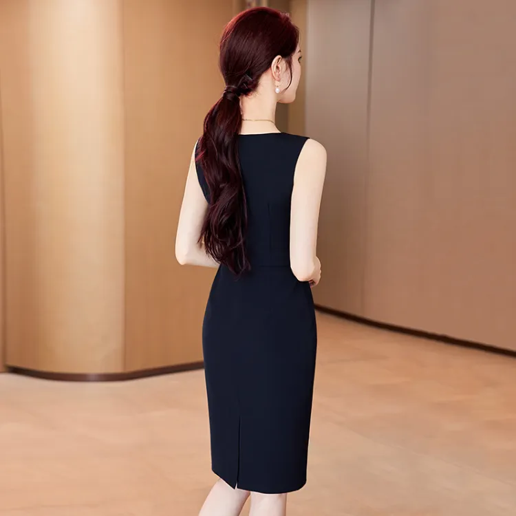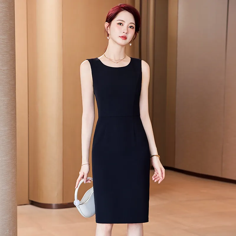 YIAIFUJU Черное Женское Платье Без Рукавов