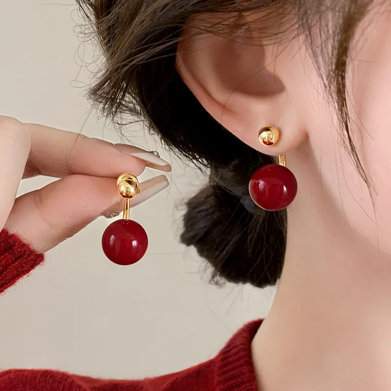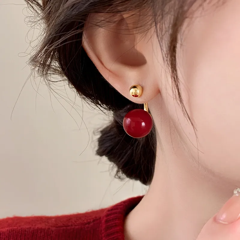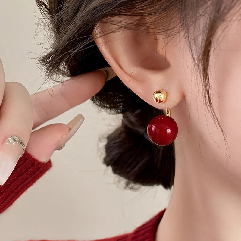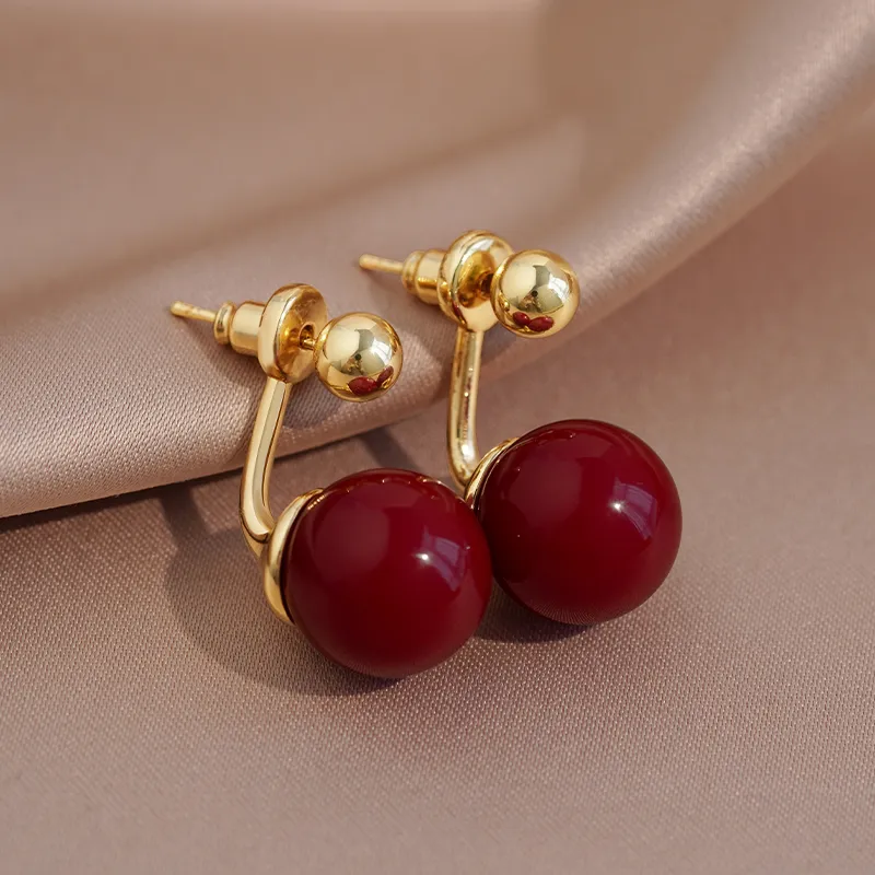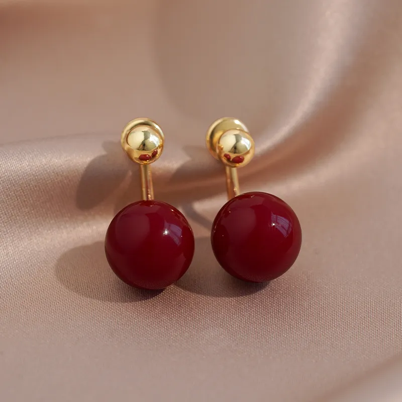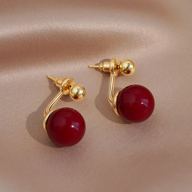 Стиль:Пара красных искусственных жемчужных сережек-гвоздиков