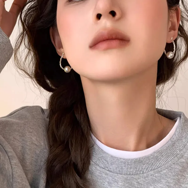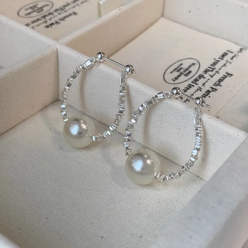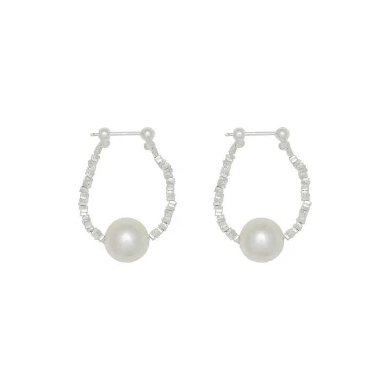Стиль:Серьги-кольца из стерлингового серебра с искусственным жемчугом