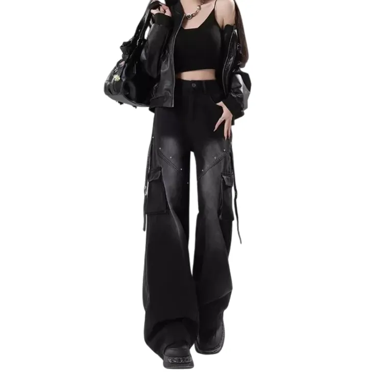YICHAI Черные джинсы с флисовой подкладкой и утолщенные женские