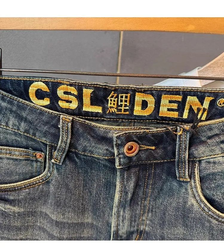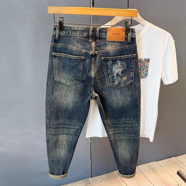 YICHEN Синий [Карп кои Вышивка] Унисекс Джинсы