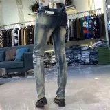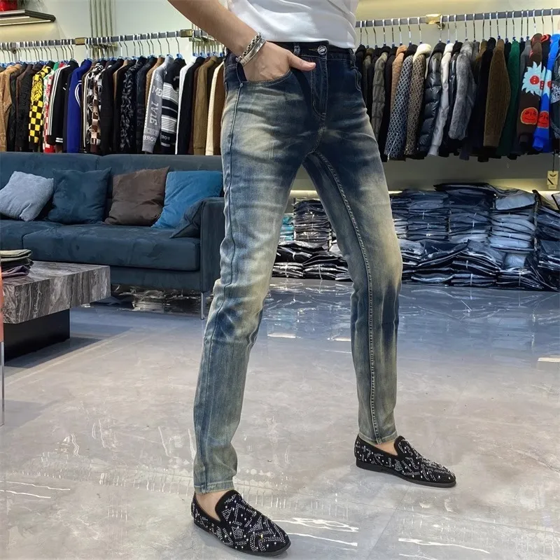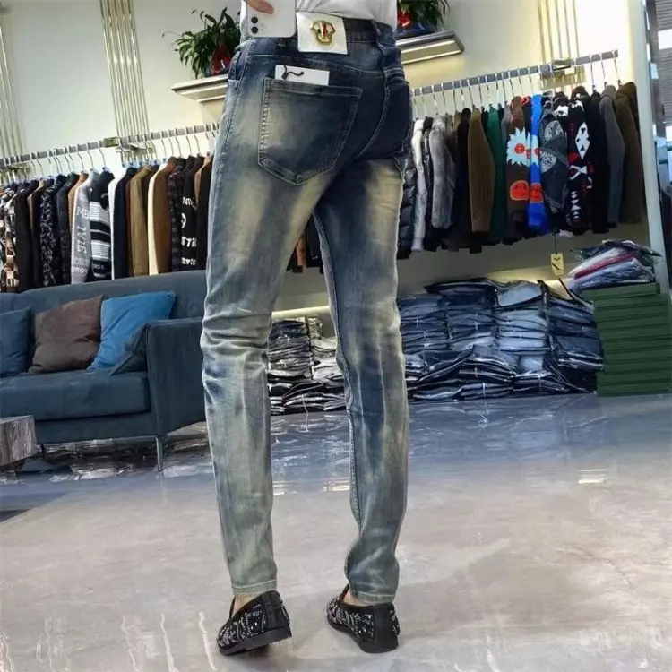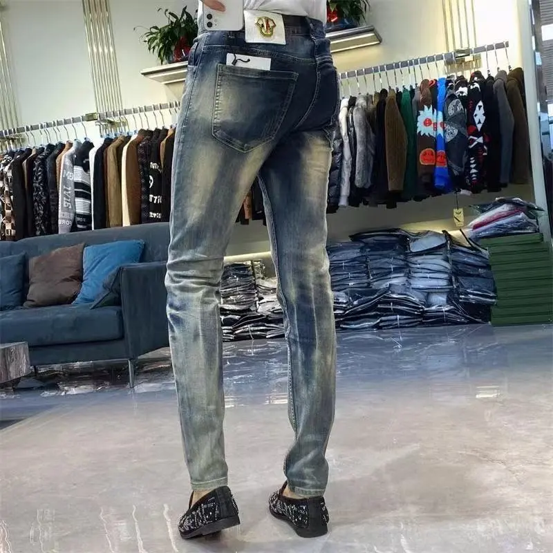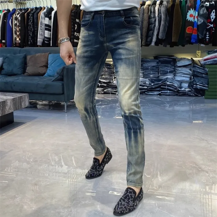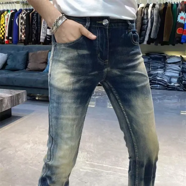 YICHEN Синий Облегающий крой Зауженные брюки Унисекс Джинсы