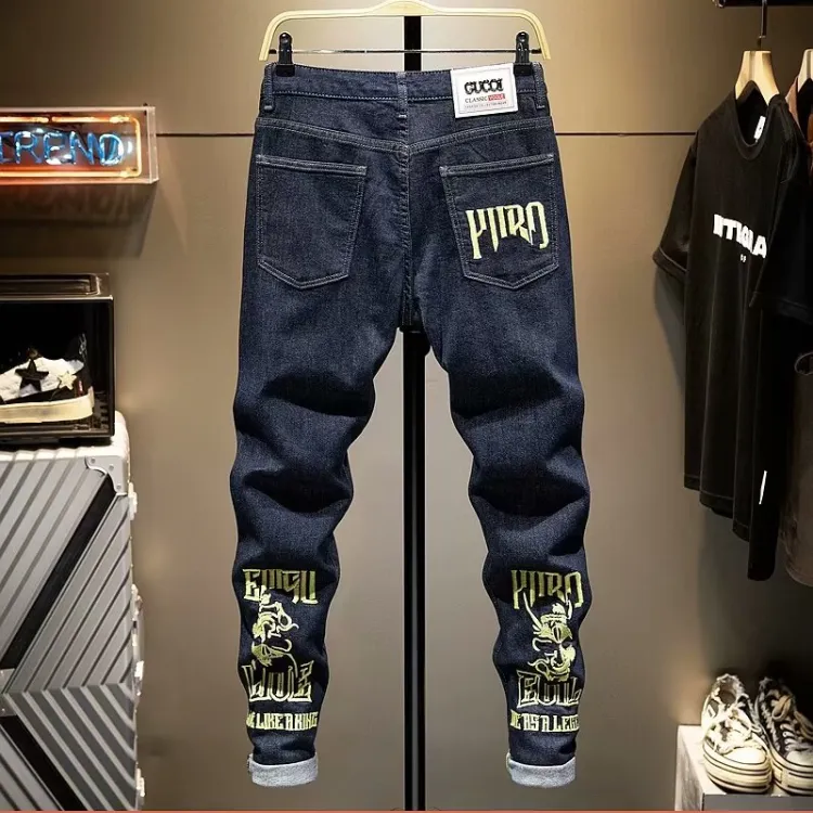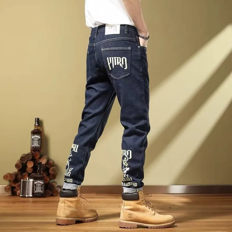 YICHEN Синий Призрак Голова Вышивка Унисекс Джинсы
