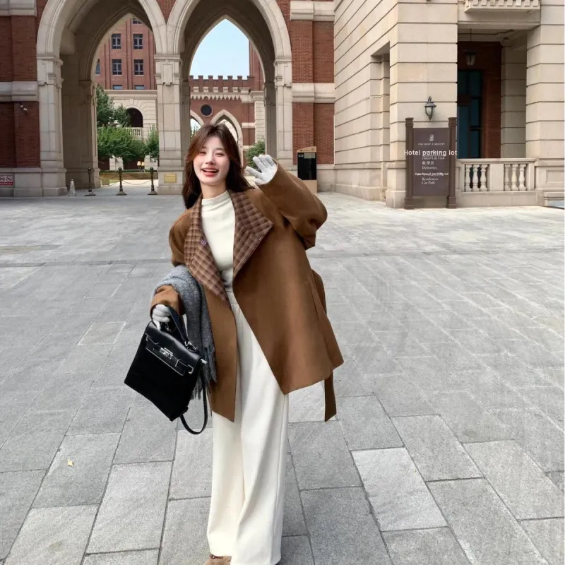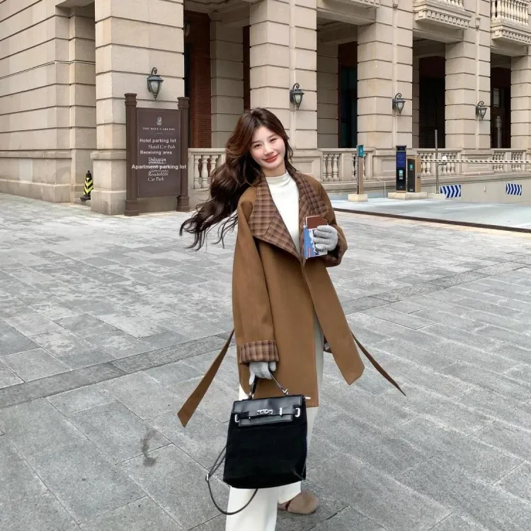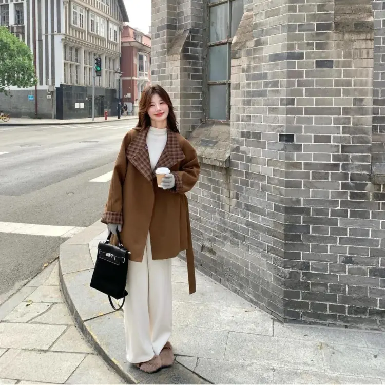 YICHEN Темно-коричневое женское пальто