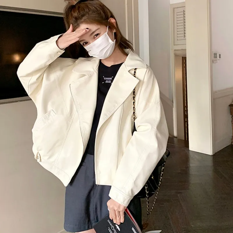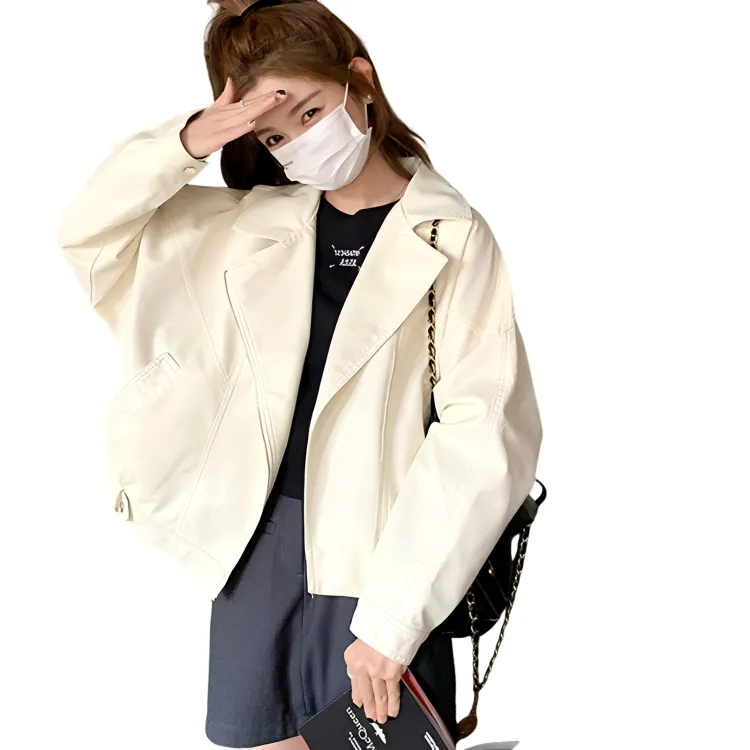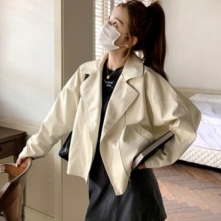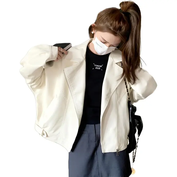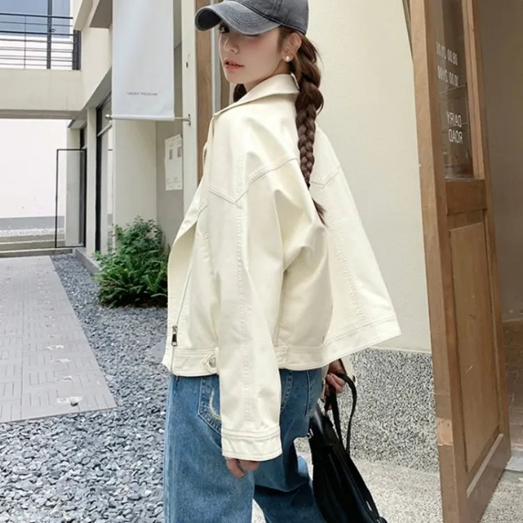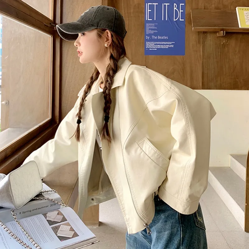 YICHEN Экрю Женские Кожаные Куртки