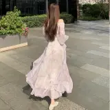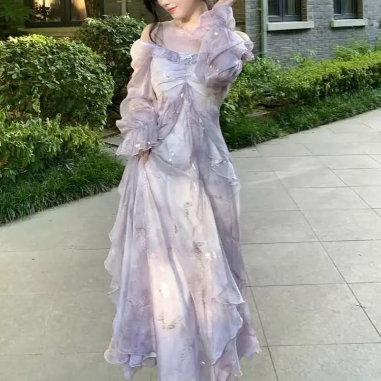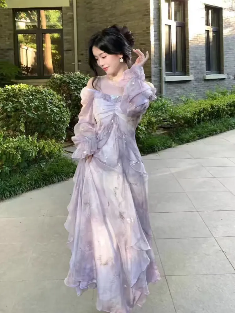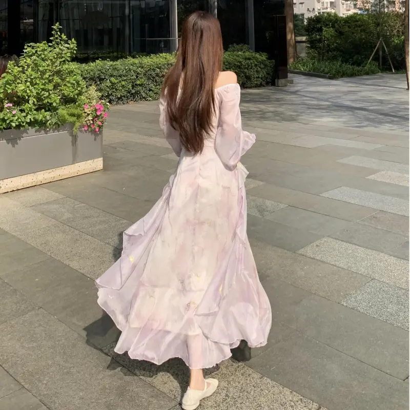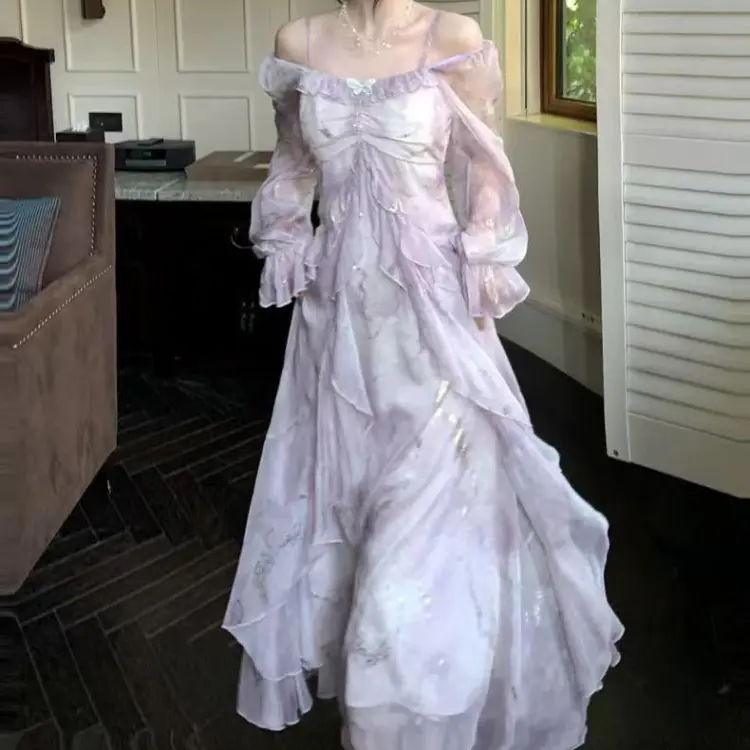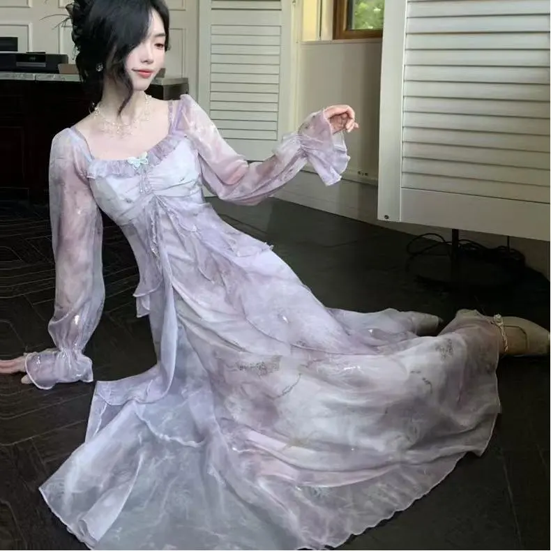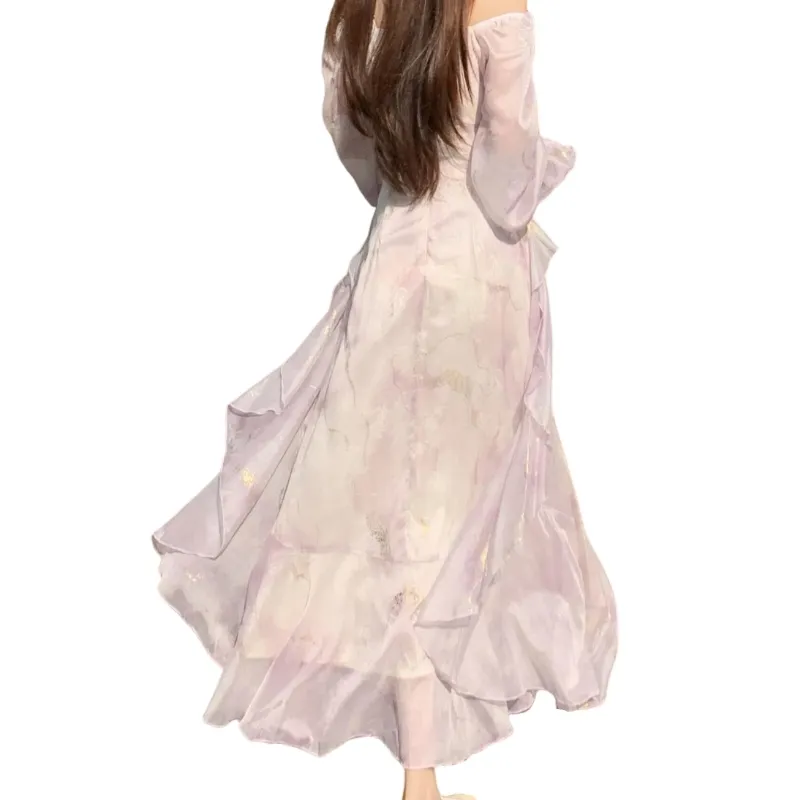 YICHEN Длинный рукав Платье Женское Фиолетовое