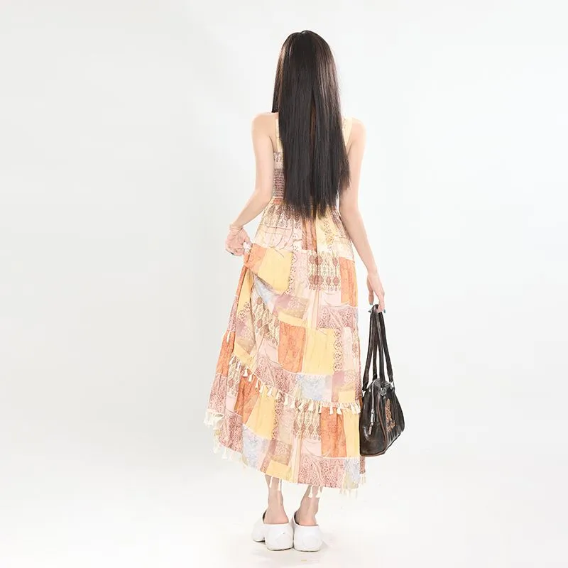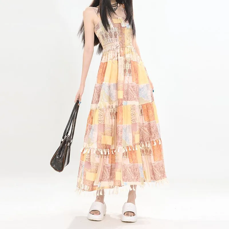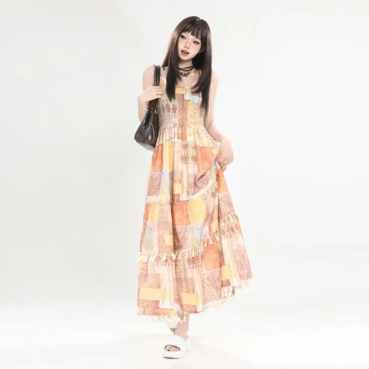 YICHEN Этнический Желтый Макси Платье Женские Слиплатья