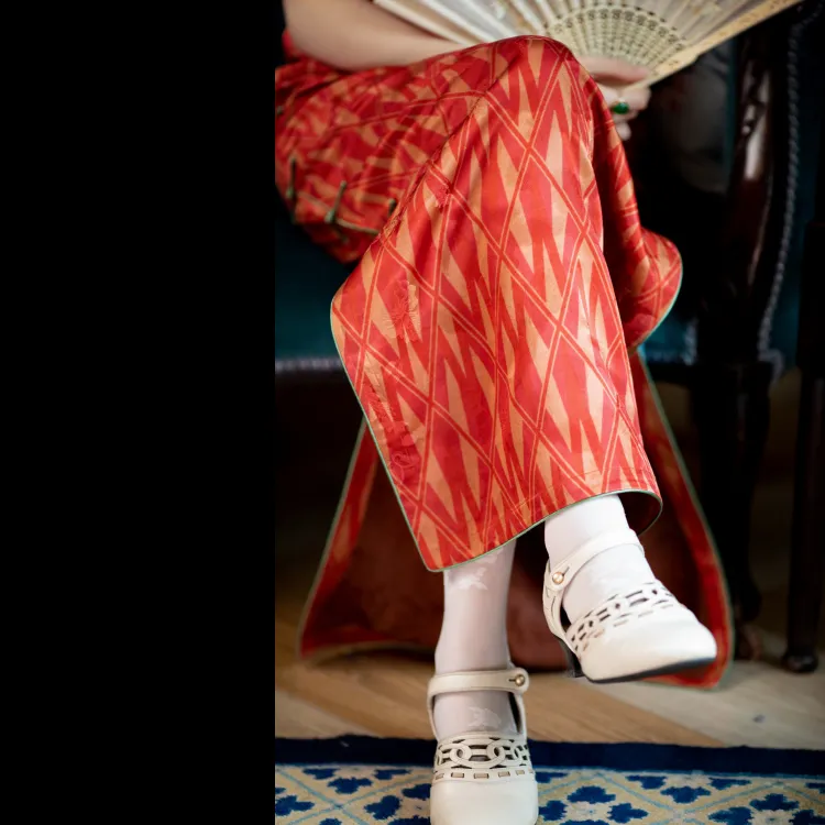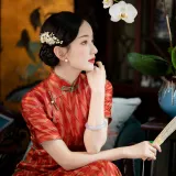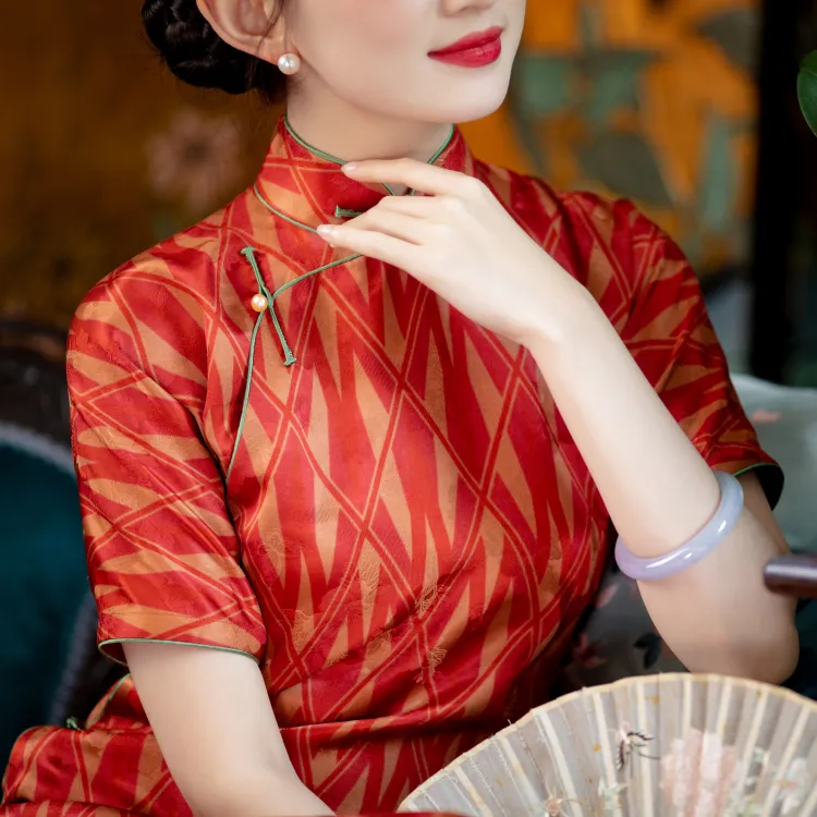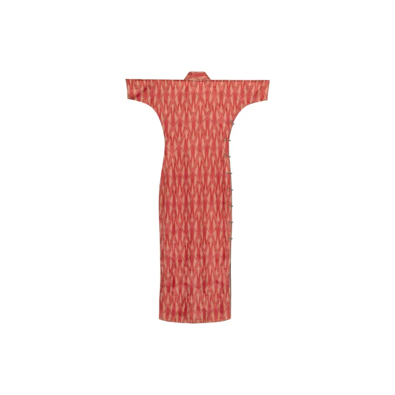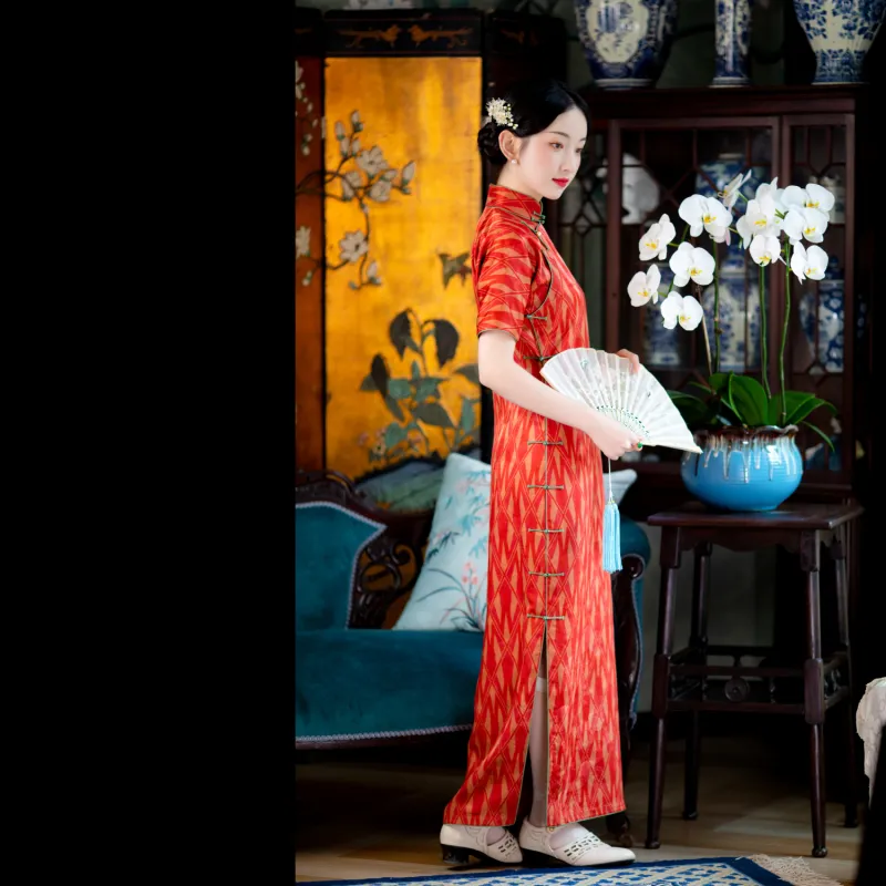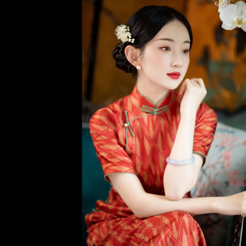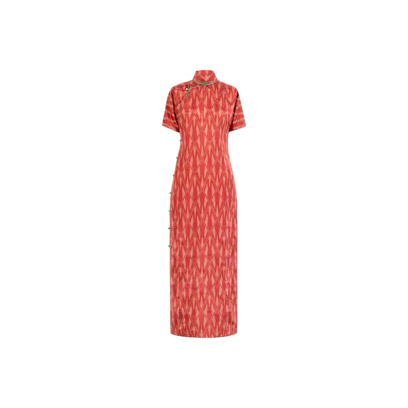 YICHENGFENGXU Чонсам Женский Оранжевый Красный Ромб С принтом