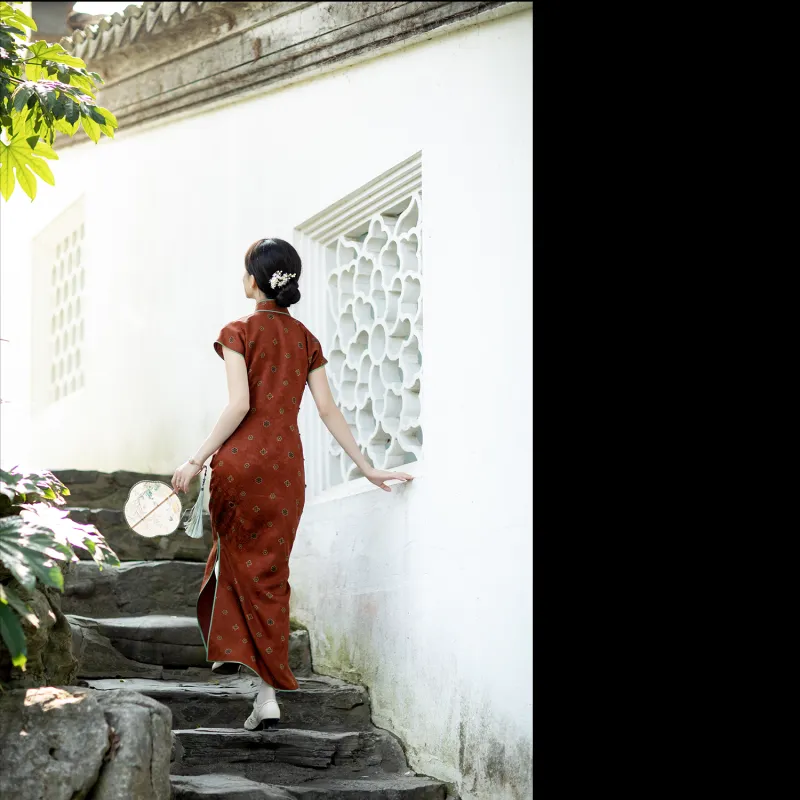 YICHENGFENGXU Чунсам Женский Красный Коричневый